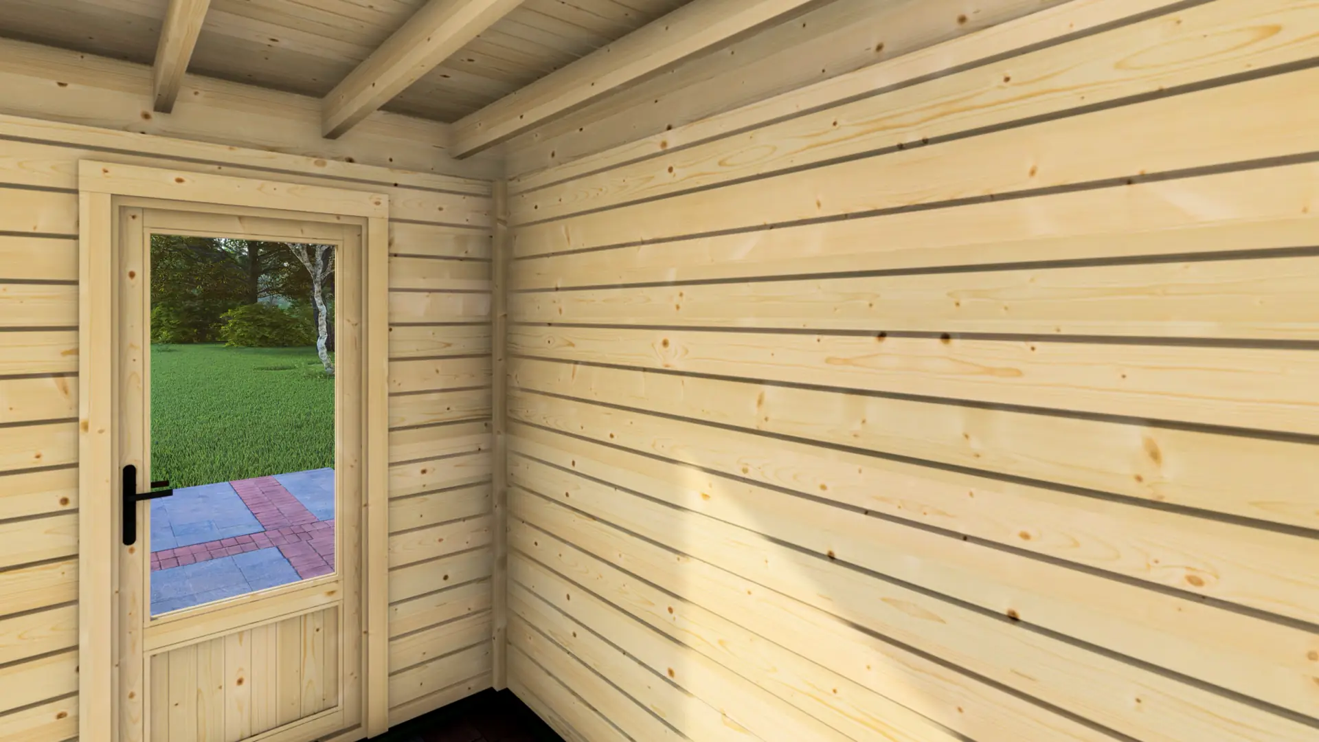 28mm thick horizontal timber panels are used to build the walls.