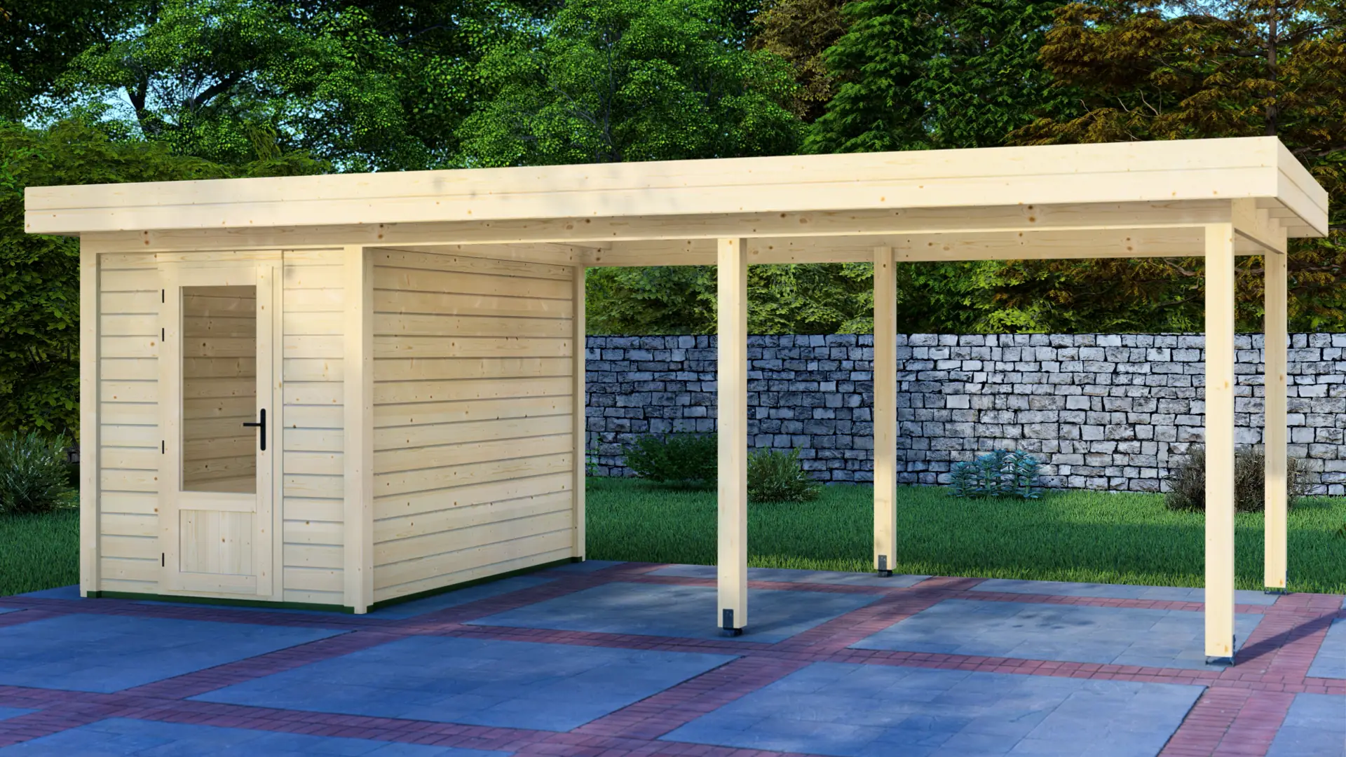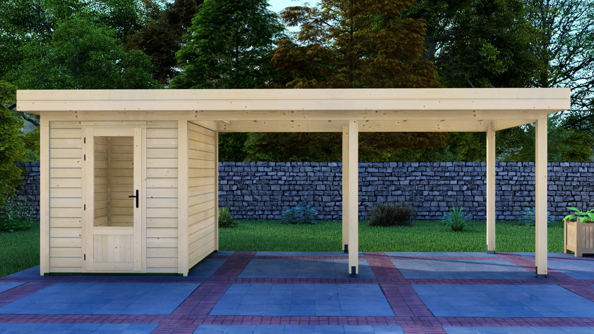 The Cabin 2x3m with Canopy 5x3m is a highly versatile outdoor structure engineered using our contemporary Post System. Combining a secure 6m² enclosed cabin with an adjacent 15m² open canopy, this structure delivers a perfect hybrid space for relaxation, storage, or outdoor entertainment.