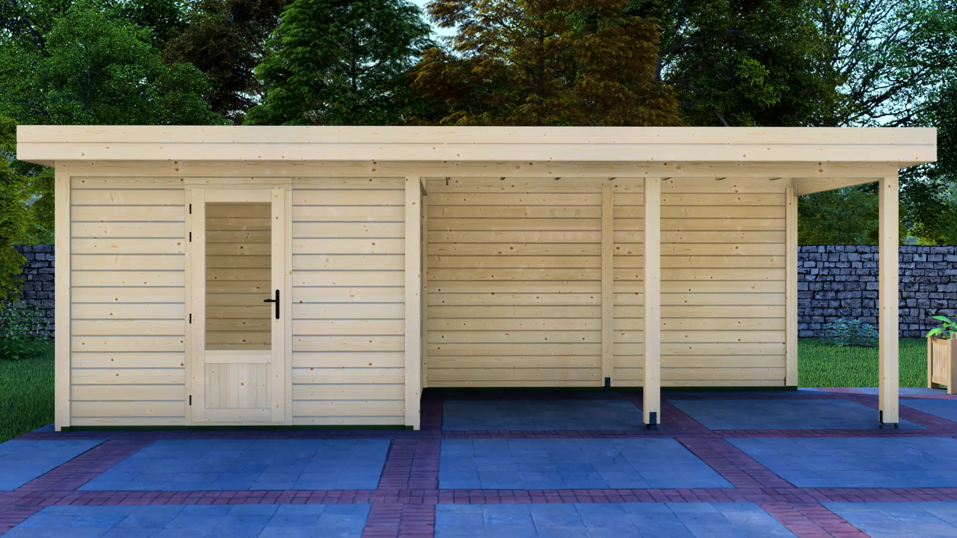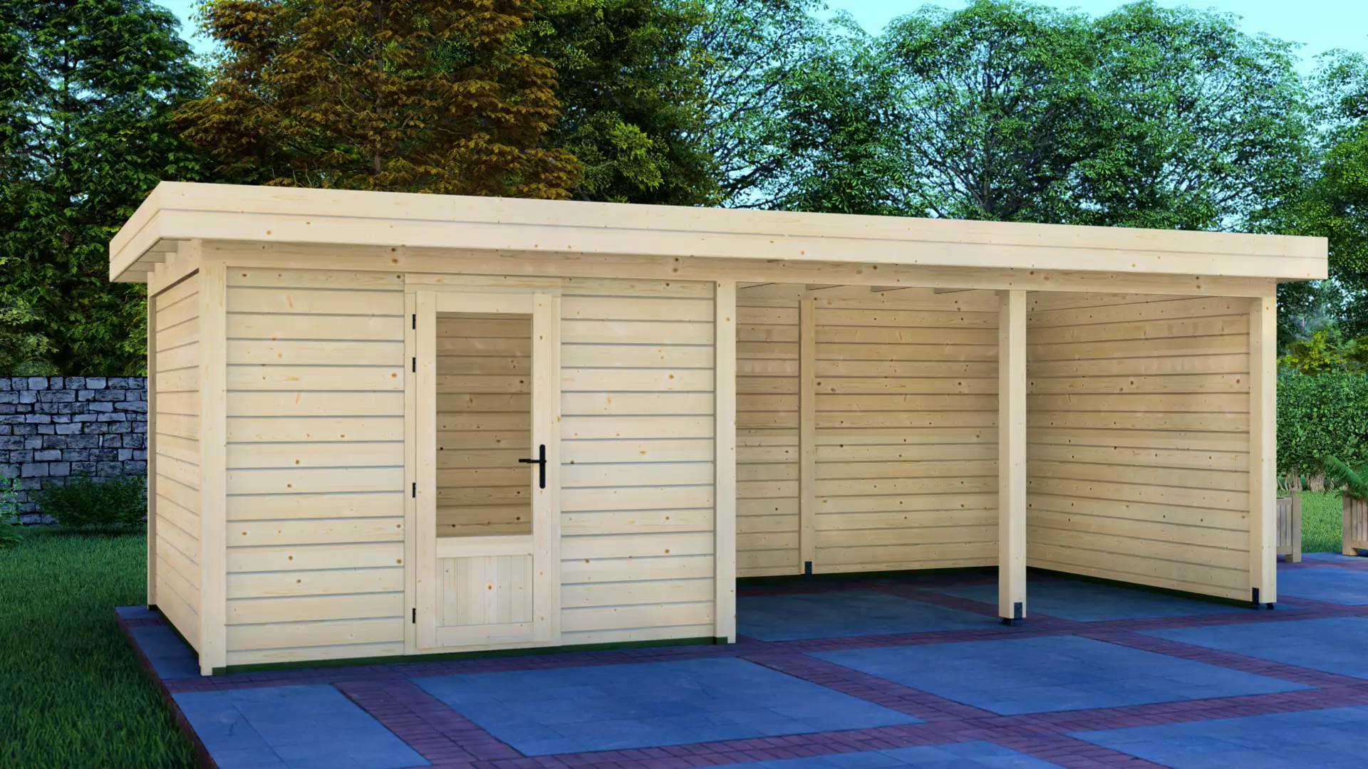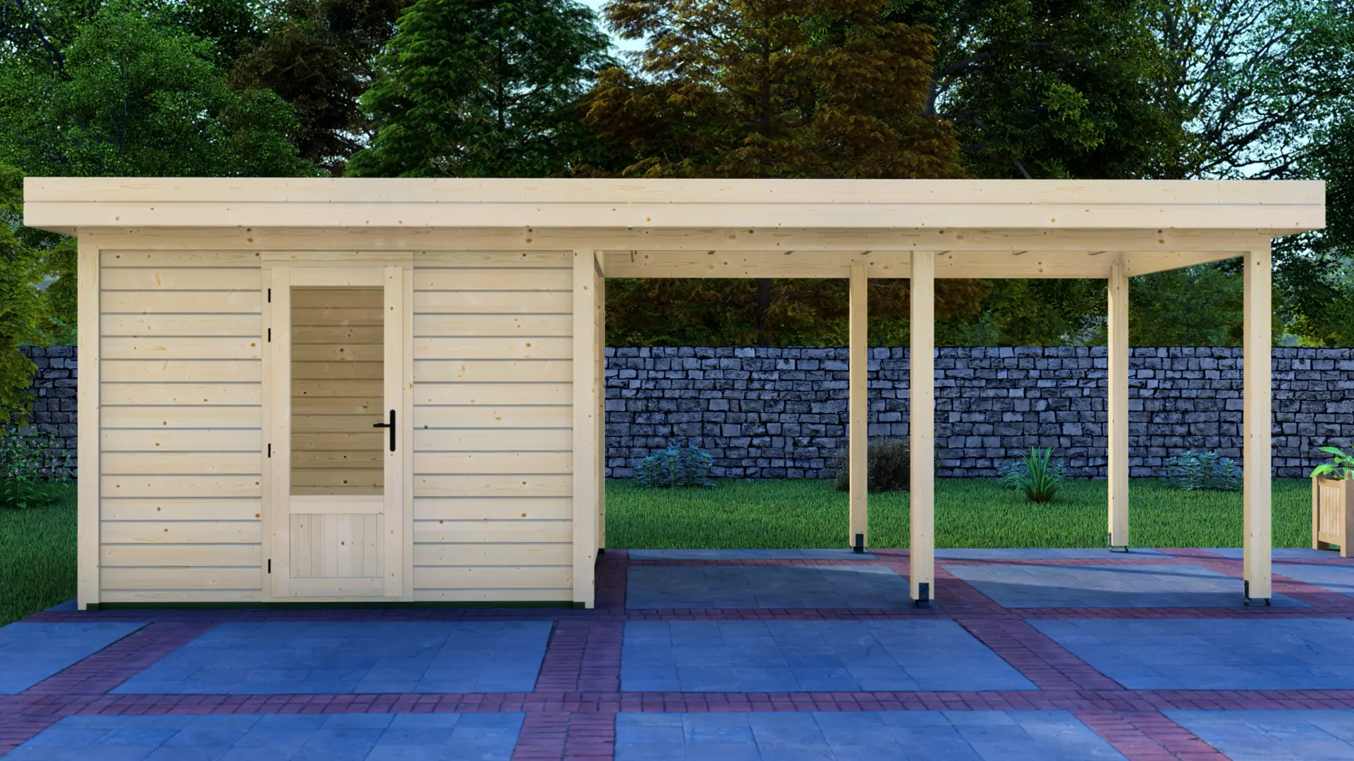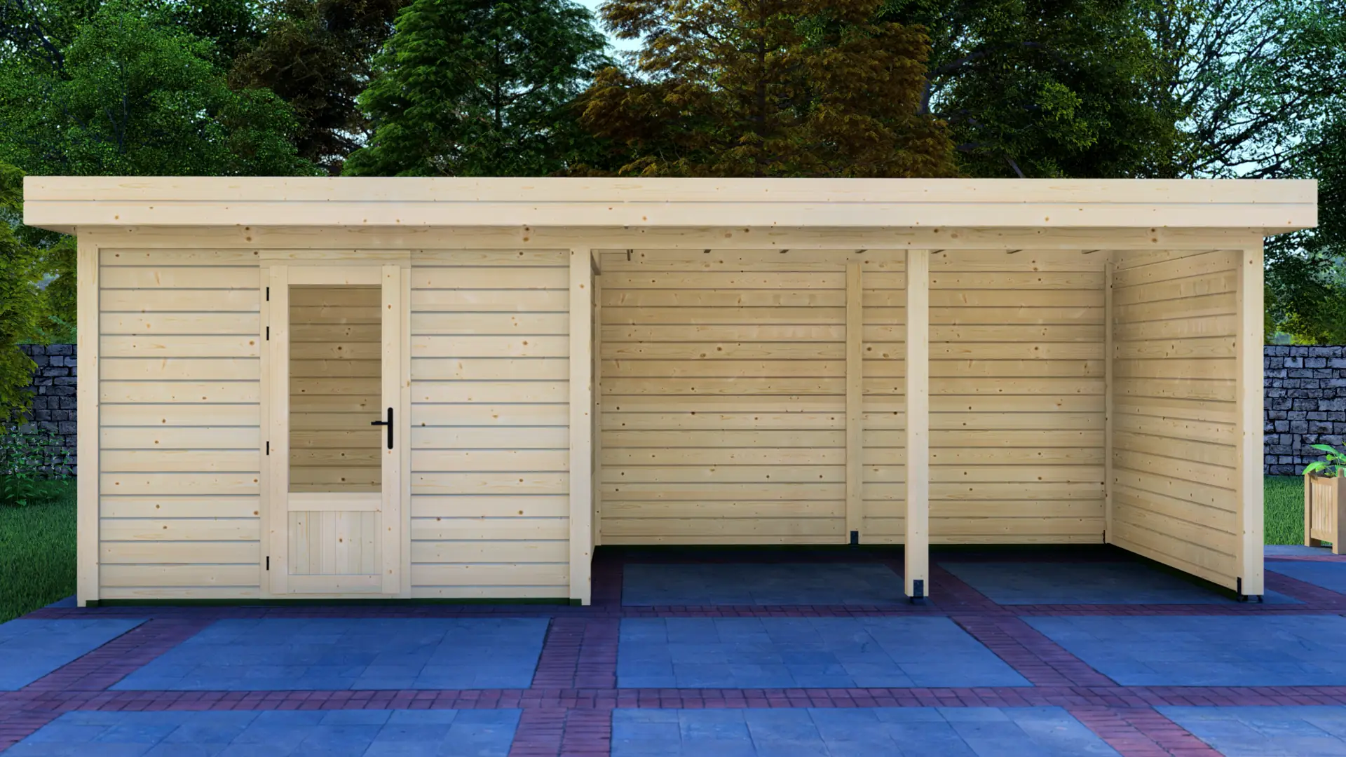 The Cabin 3x3m with Canopy 4x3m is a highly versatile outdoor structure engineered using our contemporary Post System. Combining a secure 9m² enclosed cabin with an adjacent 12m² open canopy, this structure delivers a perfect hybrid space for relaxation, storage, or outdoor entertainment.