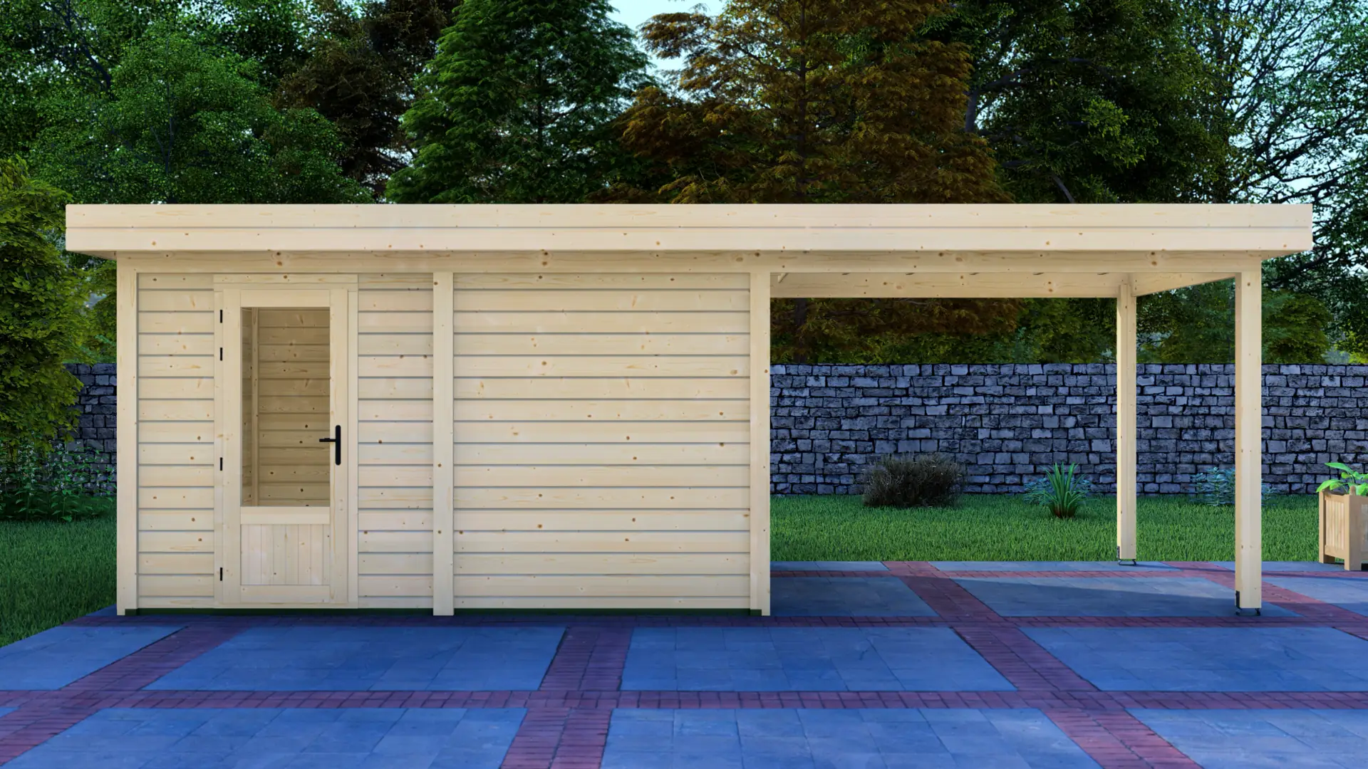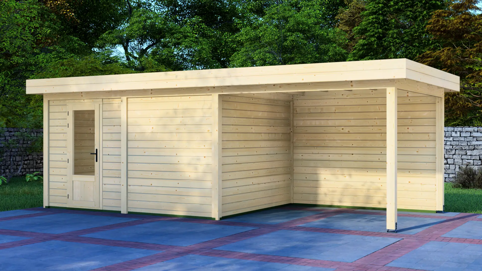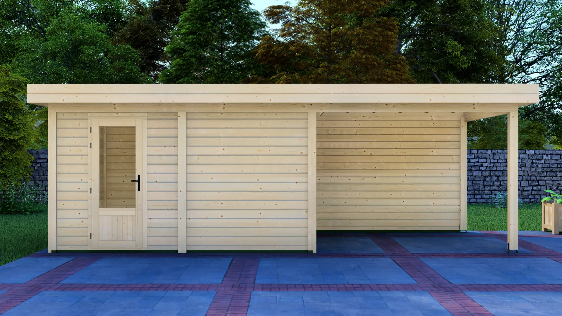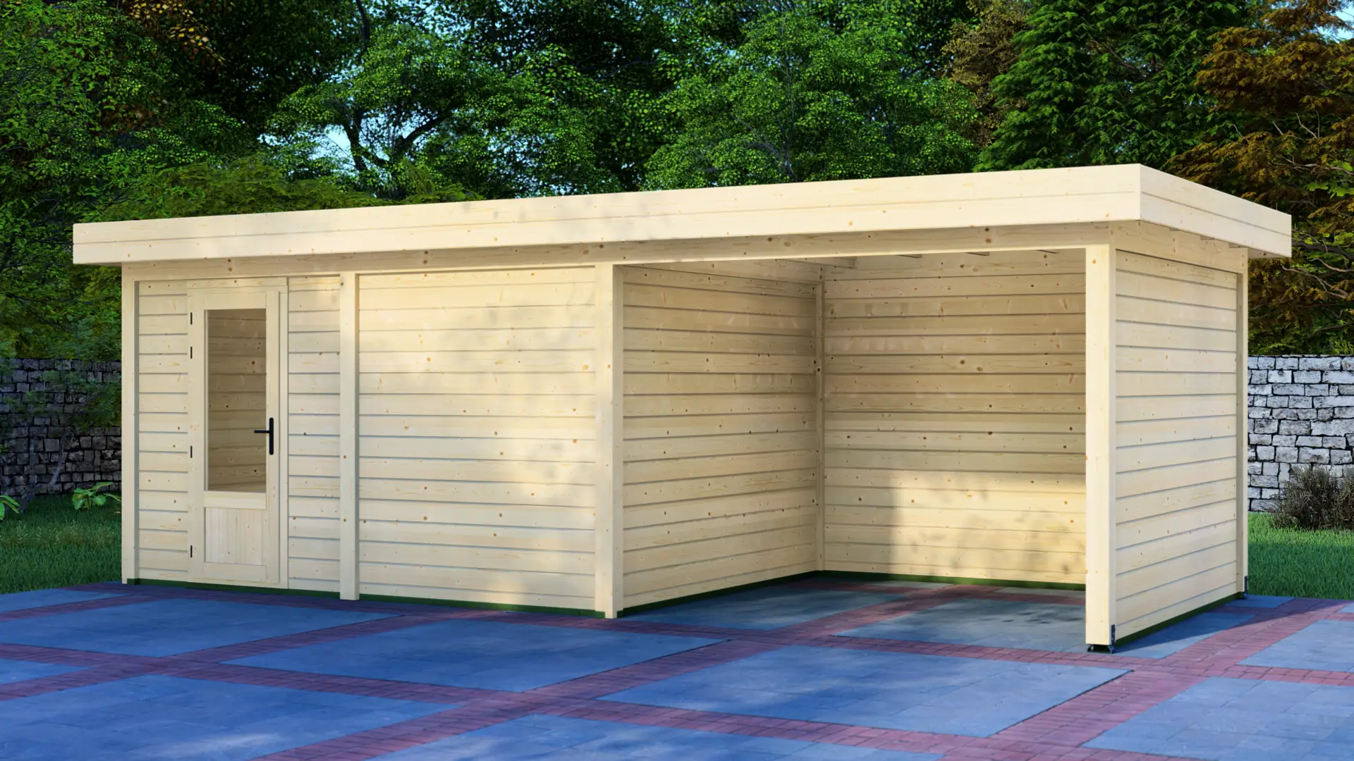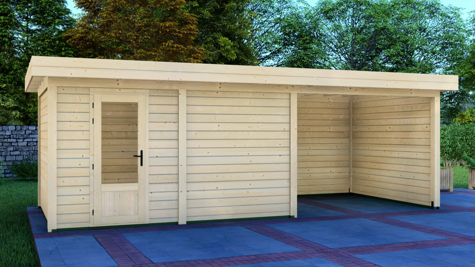The Cabin 4x3m with Canopy 3x3m is a highly versatile outdoor structure engineered using our contemporary Post System. Combining a secure 12m² enclosed cabin with an adjacent 9m² open canopy, this structure delivers a perfect hybrid space for relaxation, storage, or outdoor entertainment.