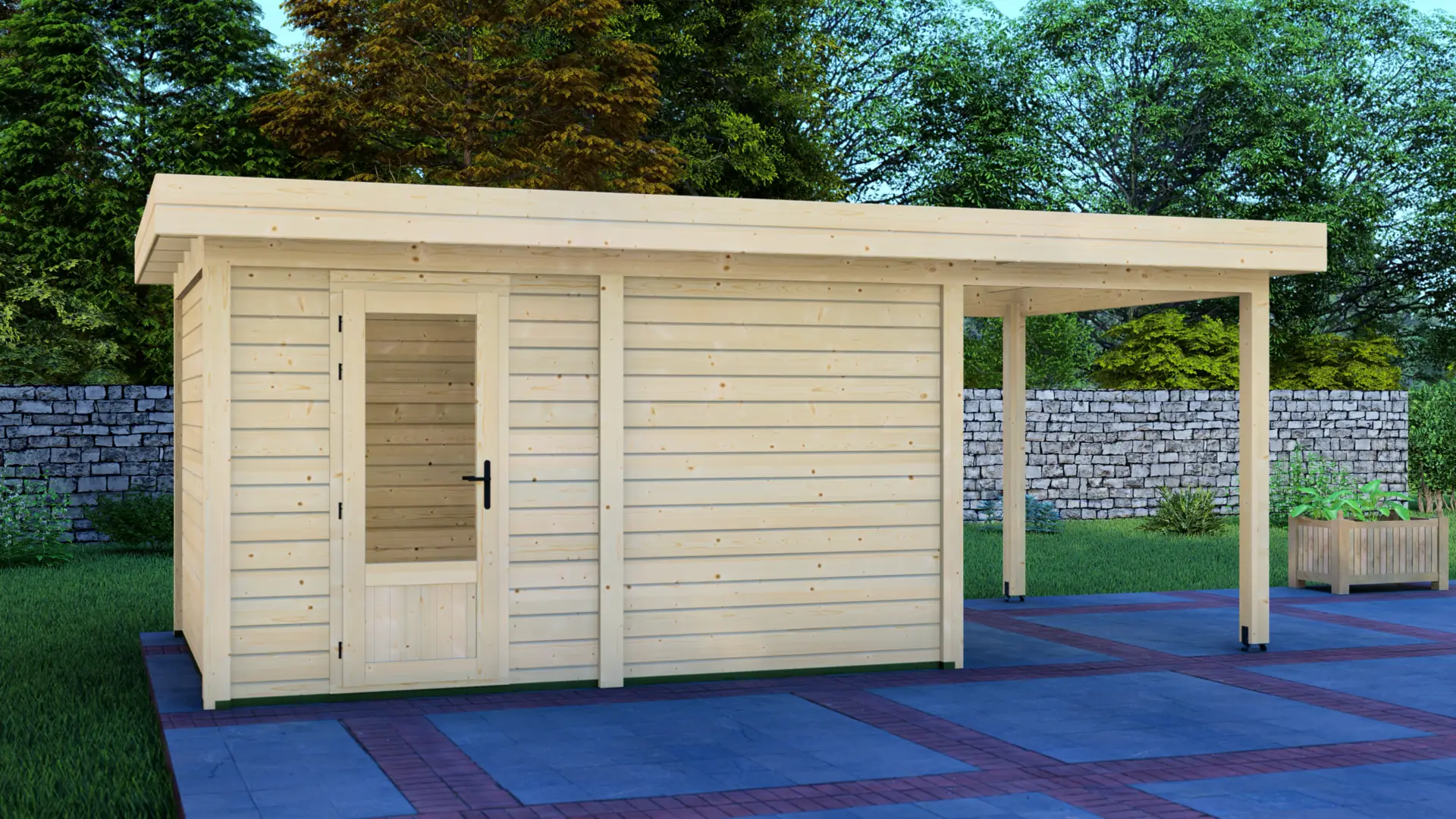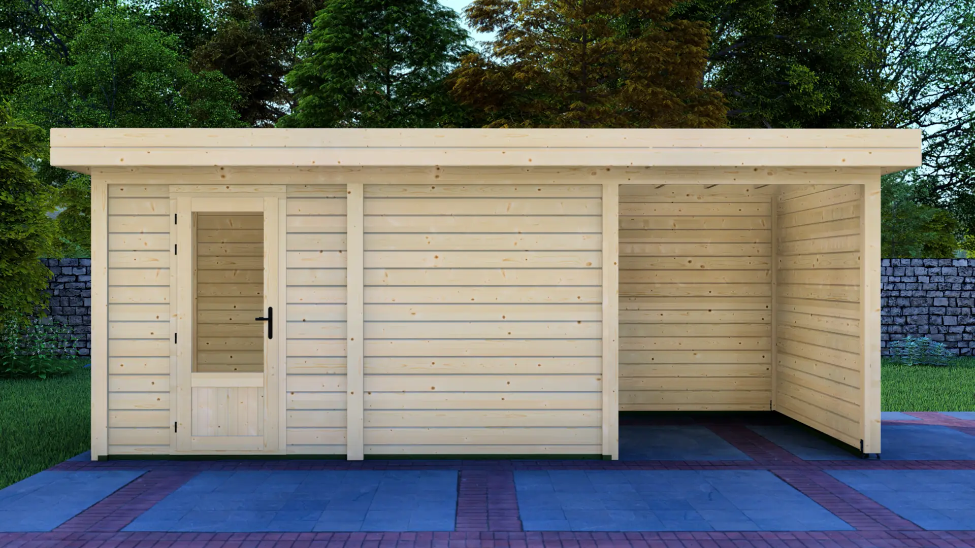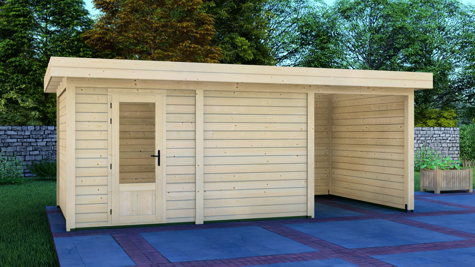 The Cabin 4x3m with Canopy 2x3m is a highly versatile outdoor structure engineered using our contemporary Post System. Combining a secure 12m² enclosed cabin with an adjacent 6m² open canopy, this structure delivers a perfect hybrid space for relaxation, storage, or outdoor entertainment.