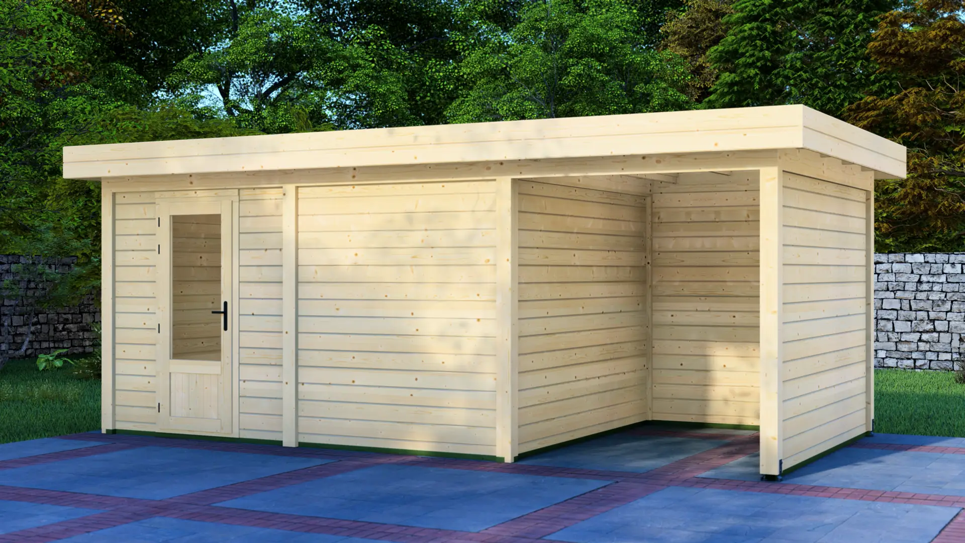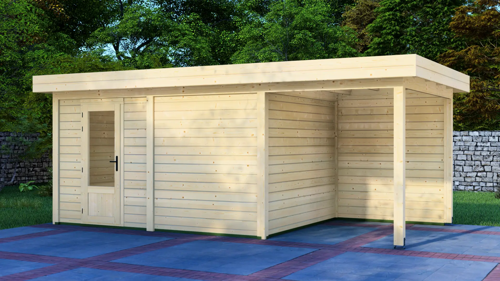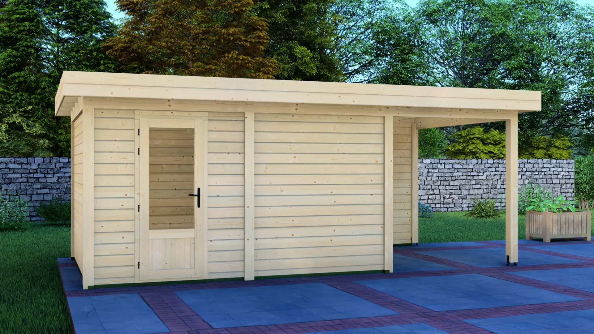 The Cabin 4x3m with Canopy 2x3m is a highly versatile outdoor structure engineered using our contemporary Post System. Combining a secure 12m² enclosed cabin with an adjacent 6m² open canopy, this structure delivers a perfect hybrid space for relaxation, storage, or outdoor entertainment.