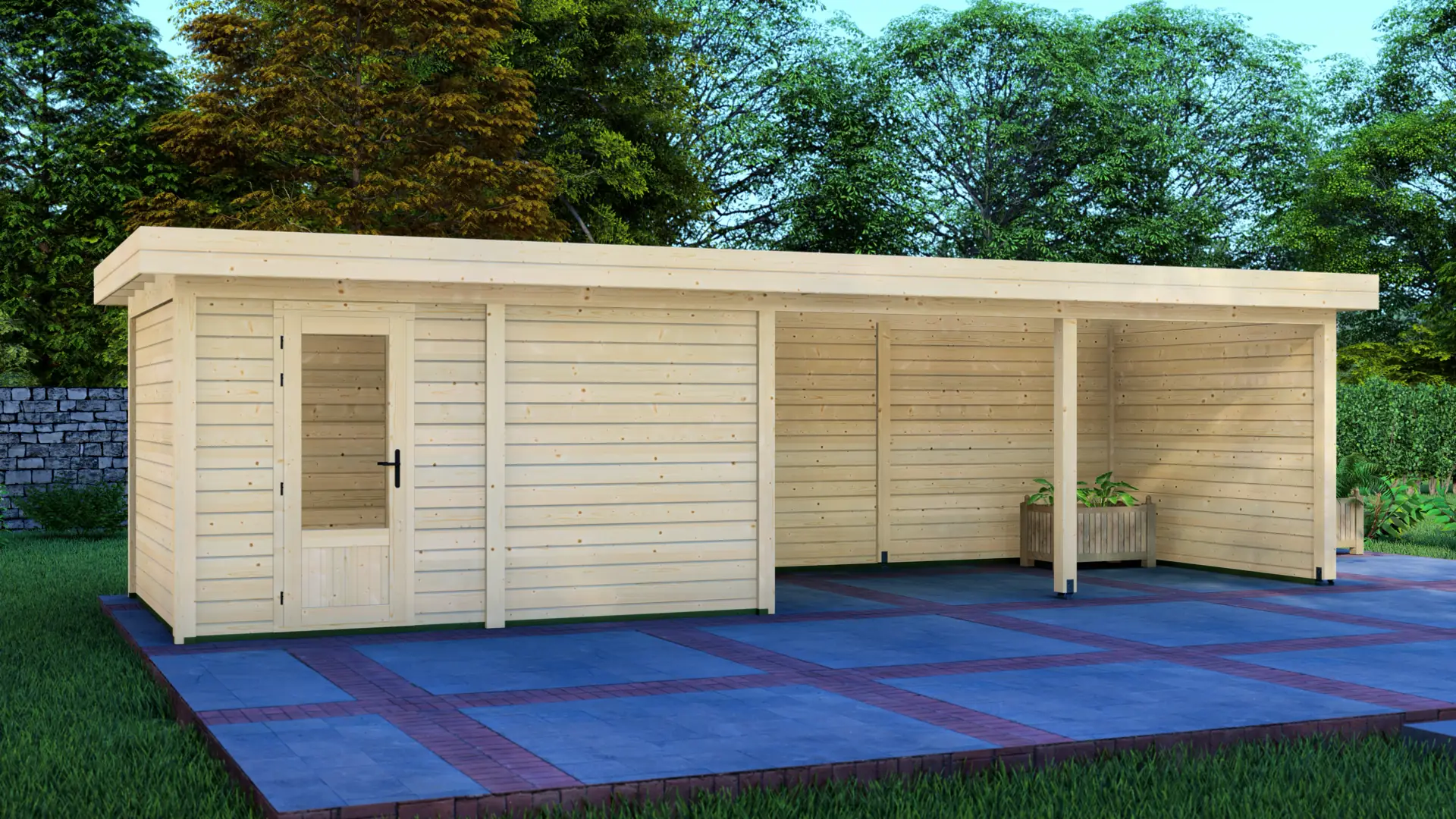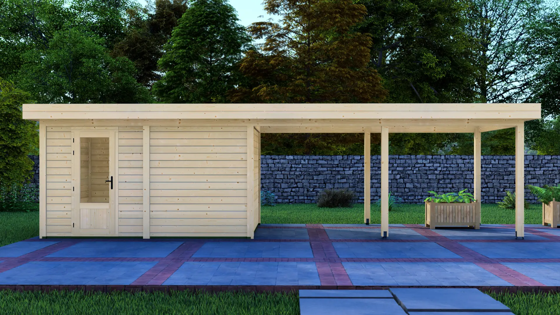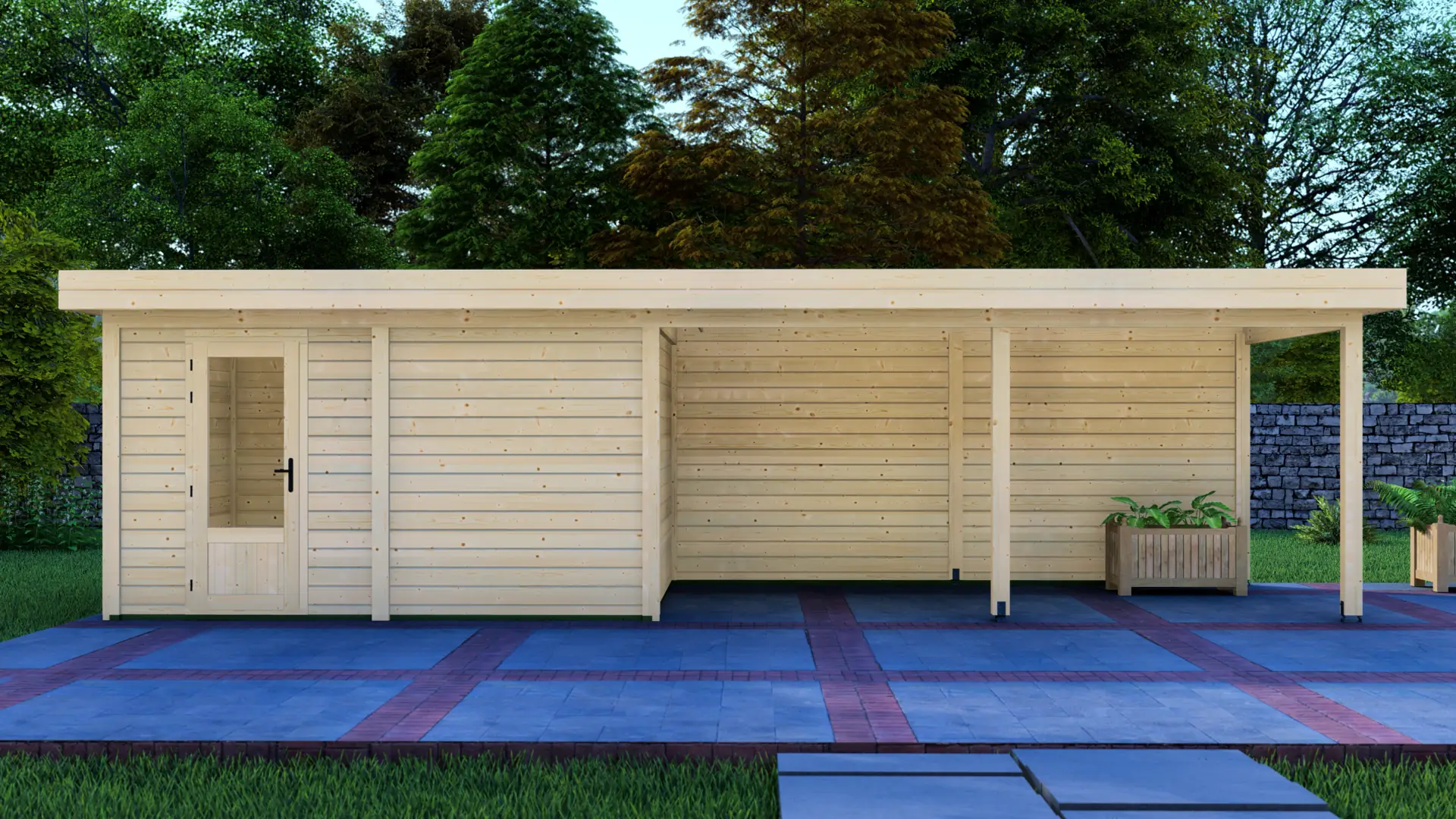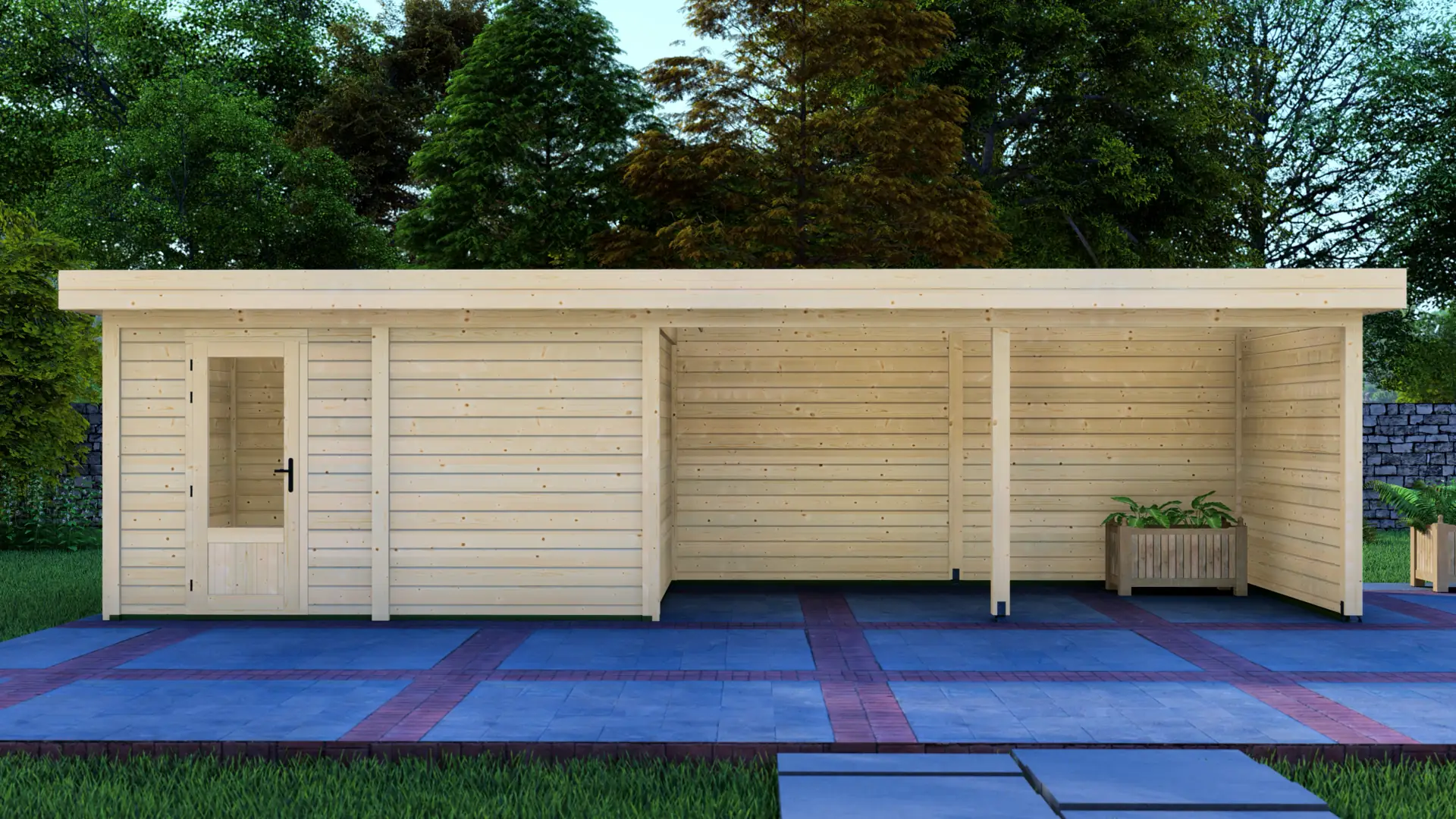 The Cabin 4x3m with Canopy 5x3m is a highly versatile outdoor structure engineered using our contemporary Post System. Combining a secure 12m² enclosed cabin with an adjacent 15m² open canopy, this structure delivers a perfect hybrid space for relaxation, storage, or outdoor entertainment.