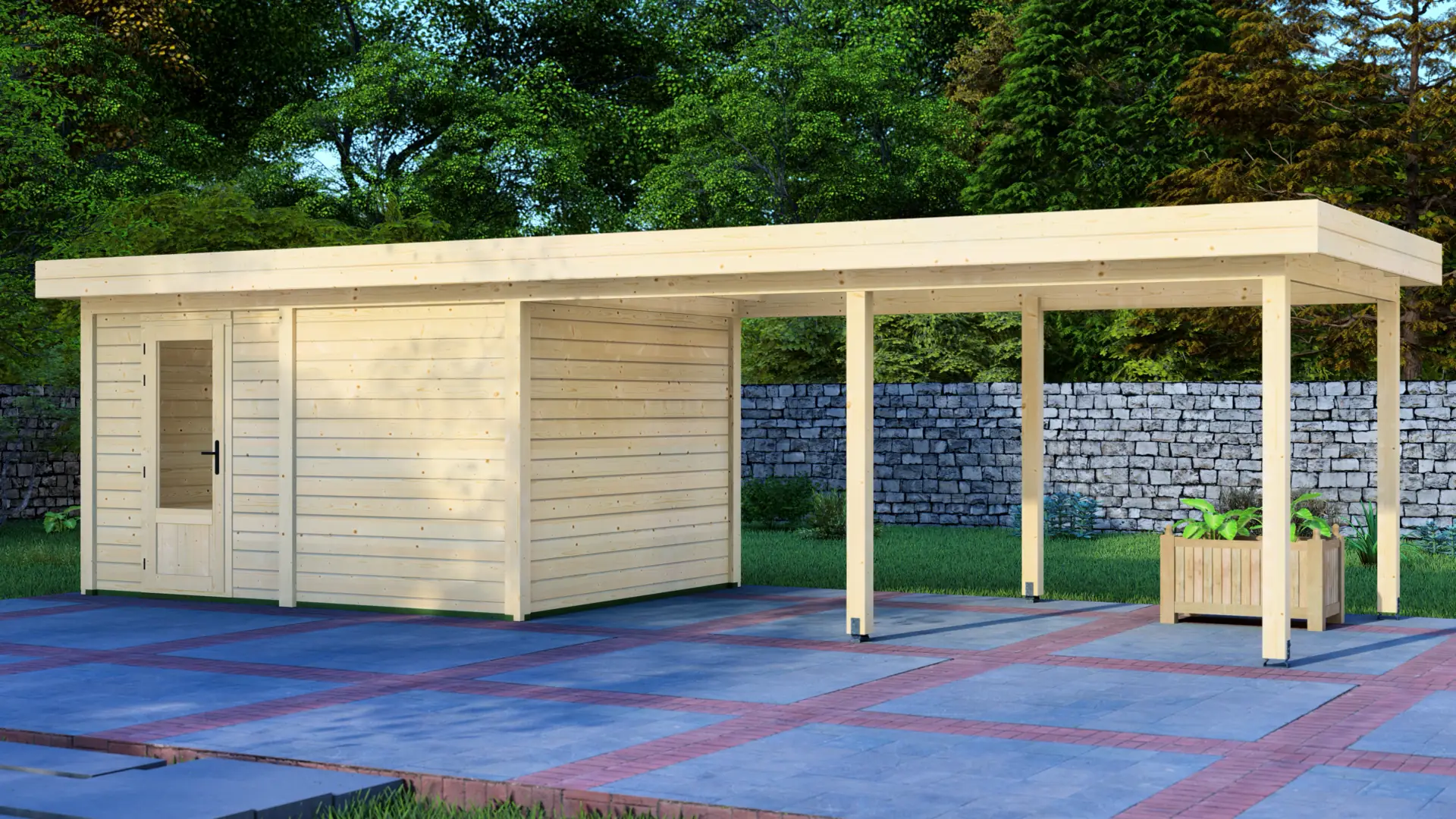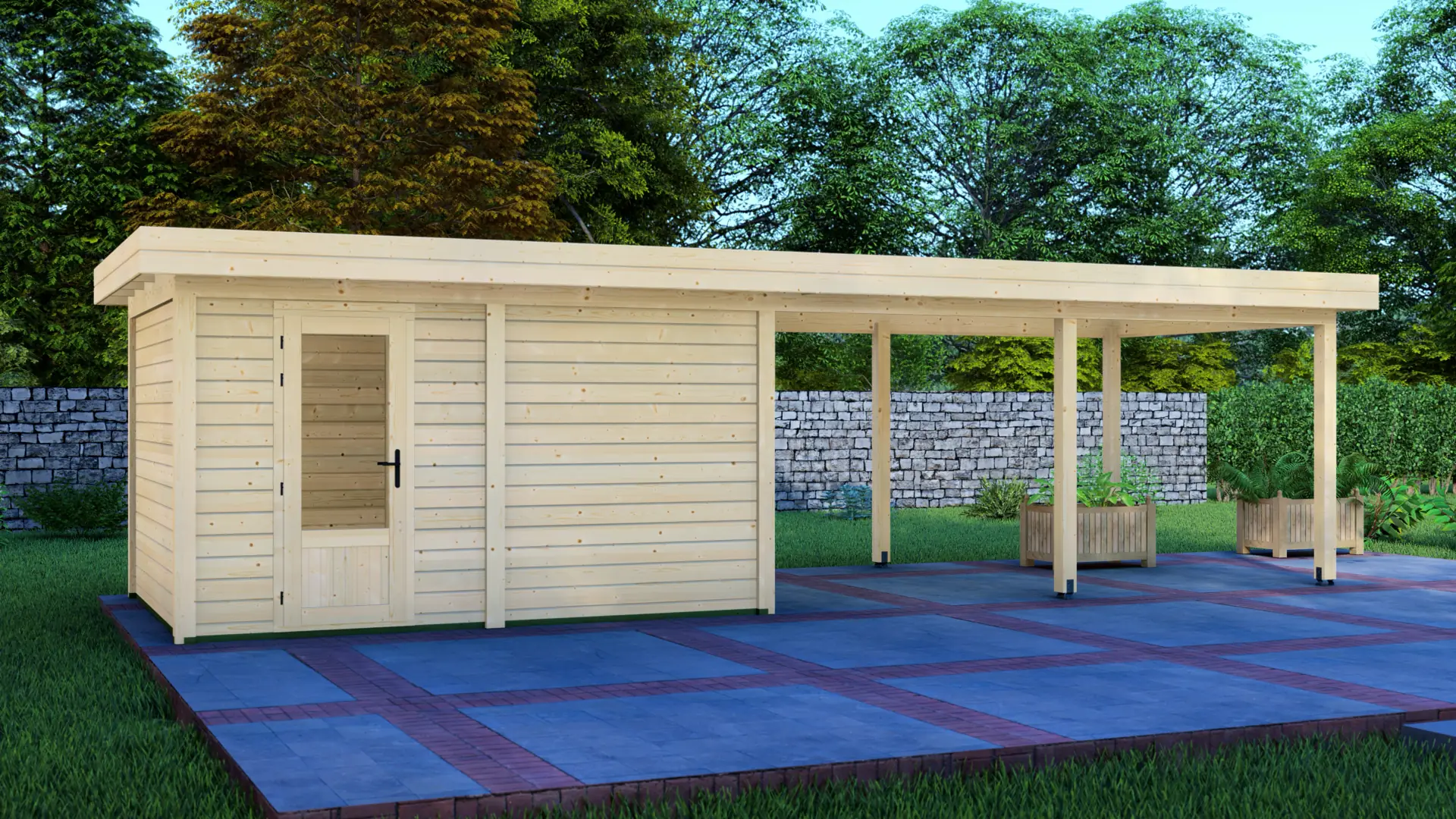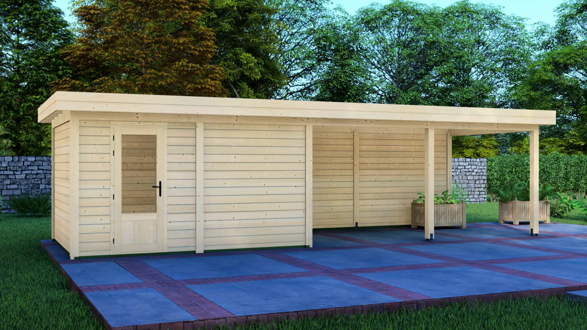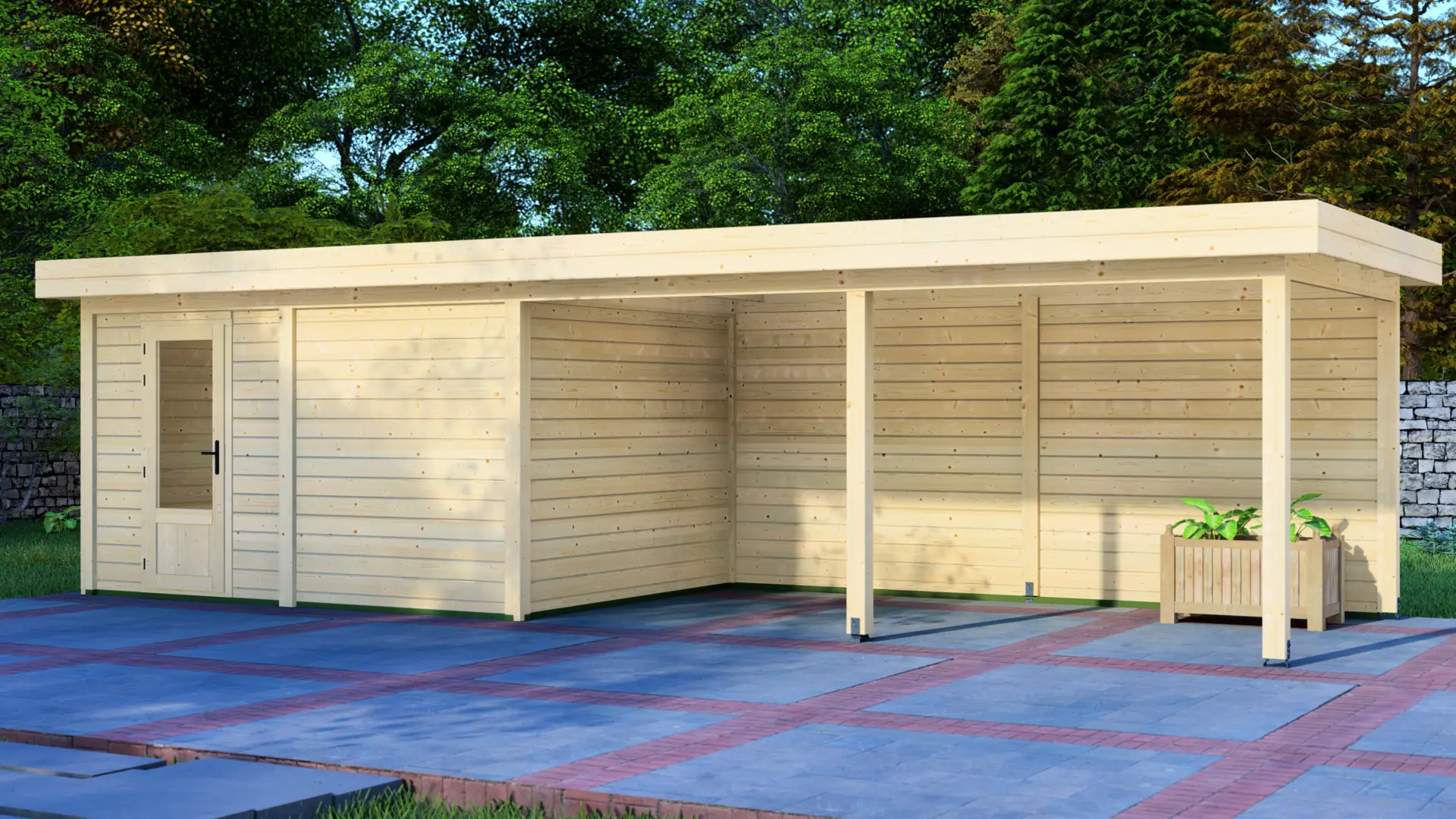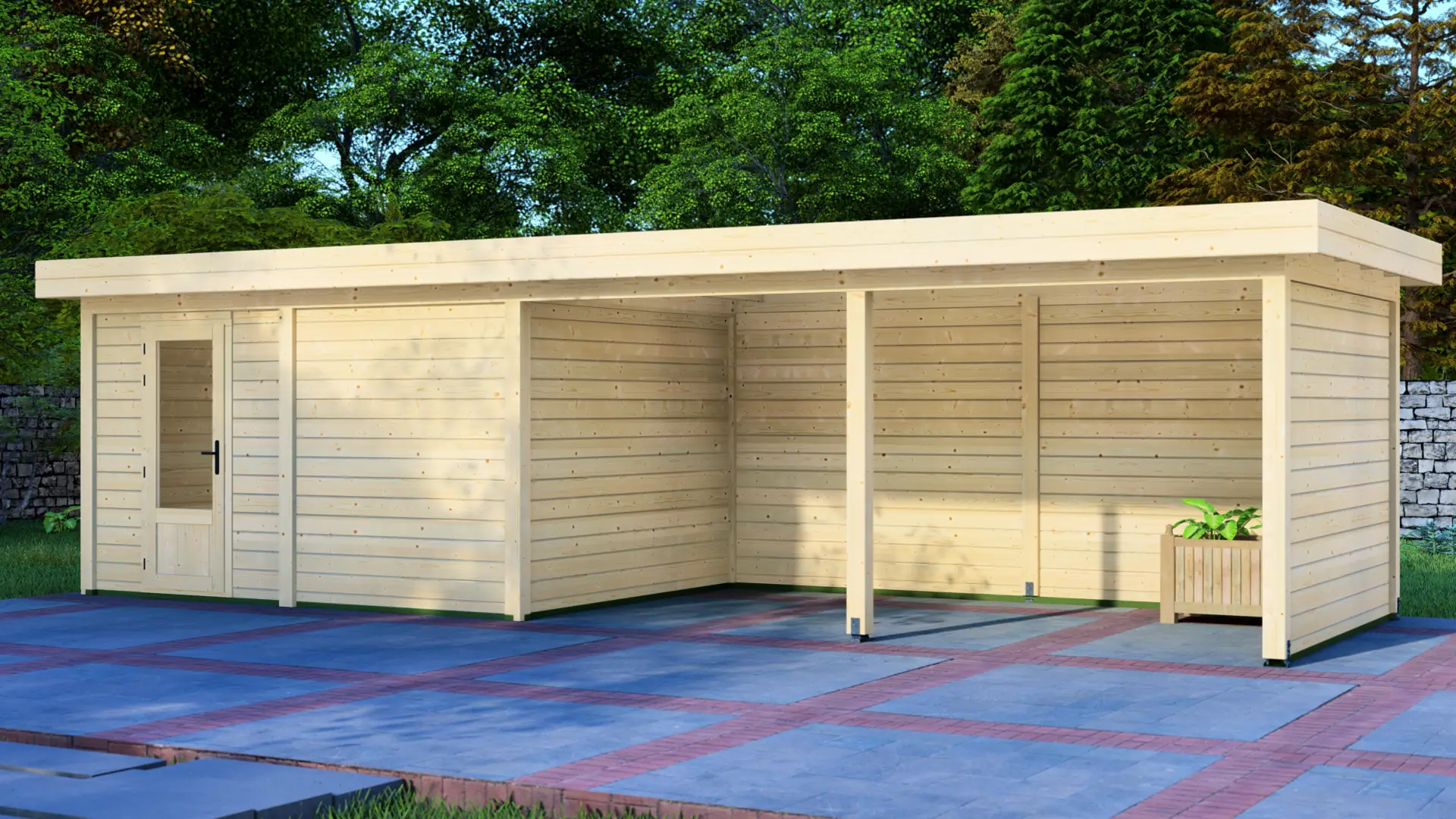 The Cabin 4x3m with Canopy 5x3m is a highly versatile outdoor structure engineered using our contemporary Post System. Combining a secure 12m² enclosed cabin with an adjacent 15m² open canopy, this structure delivers a perfect hybrid space for relaxation, storage, or outdoor entertainment.