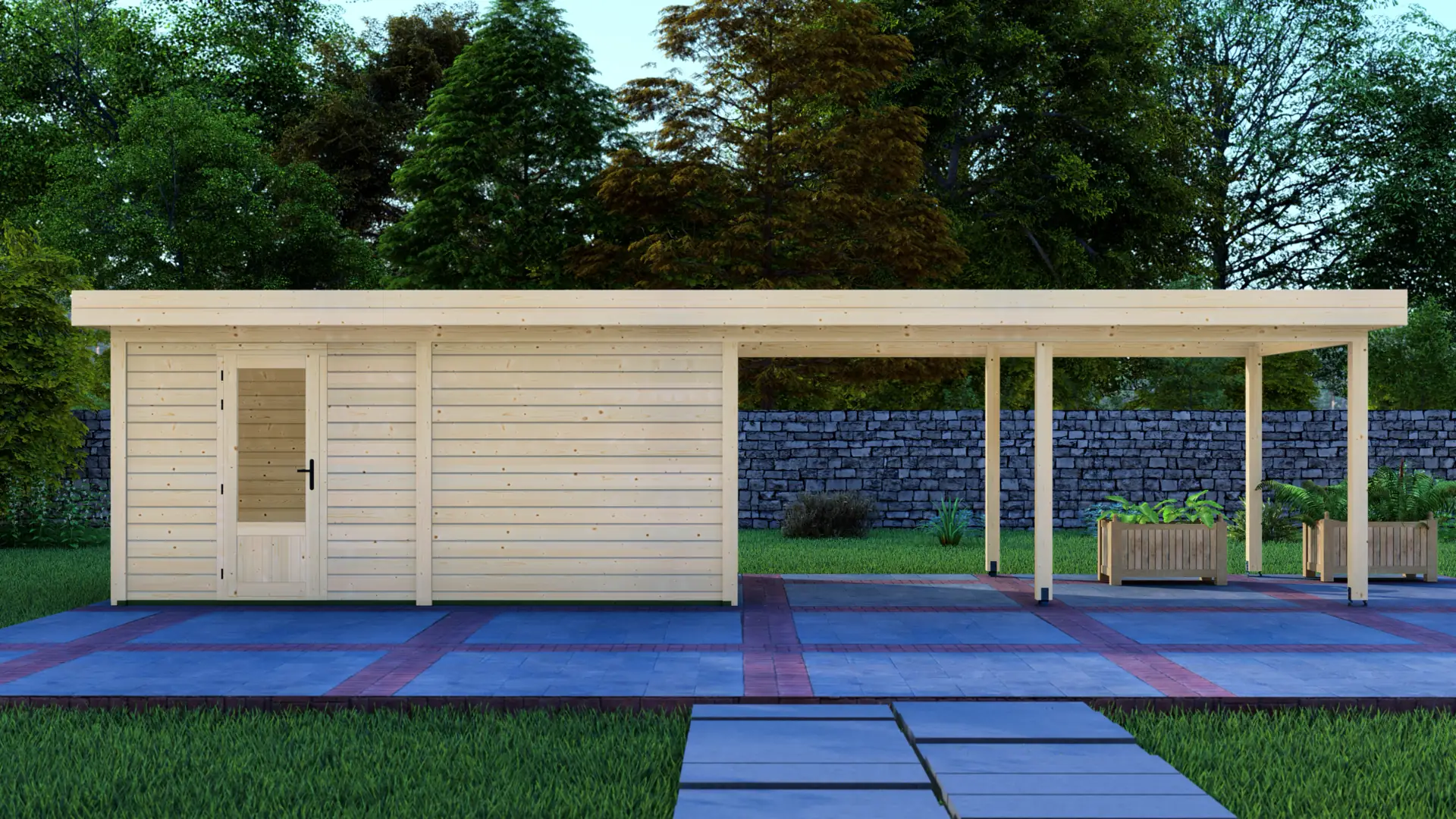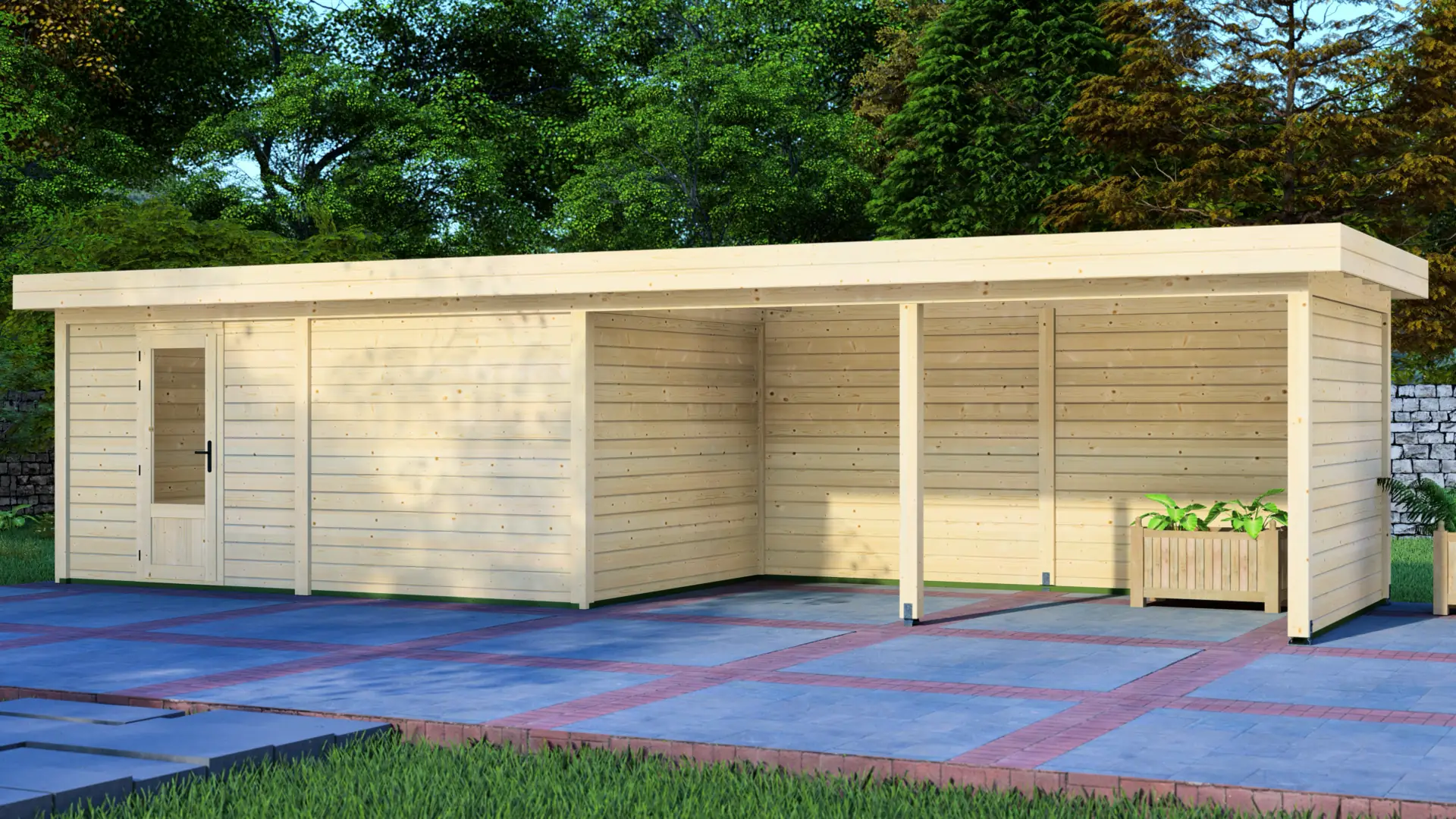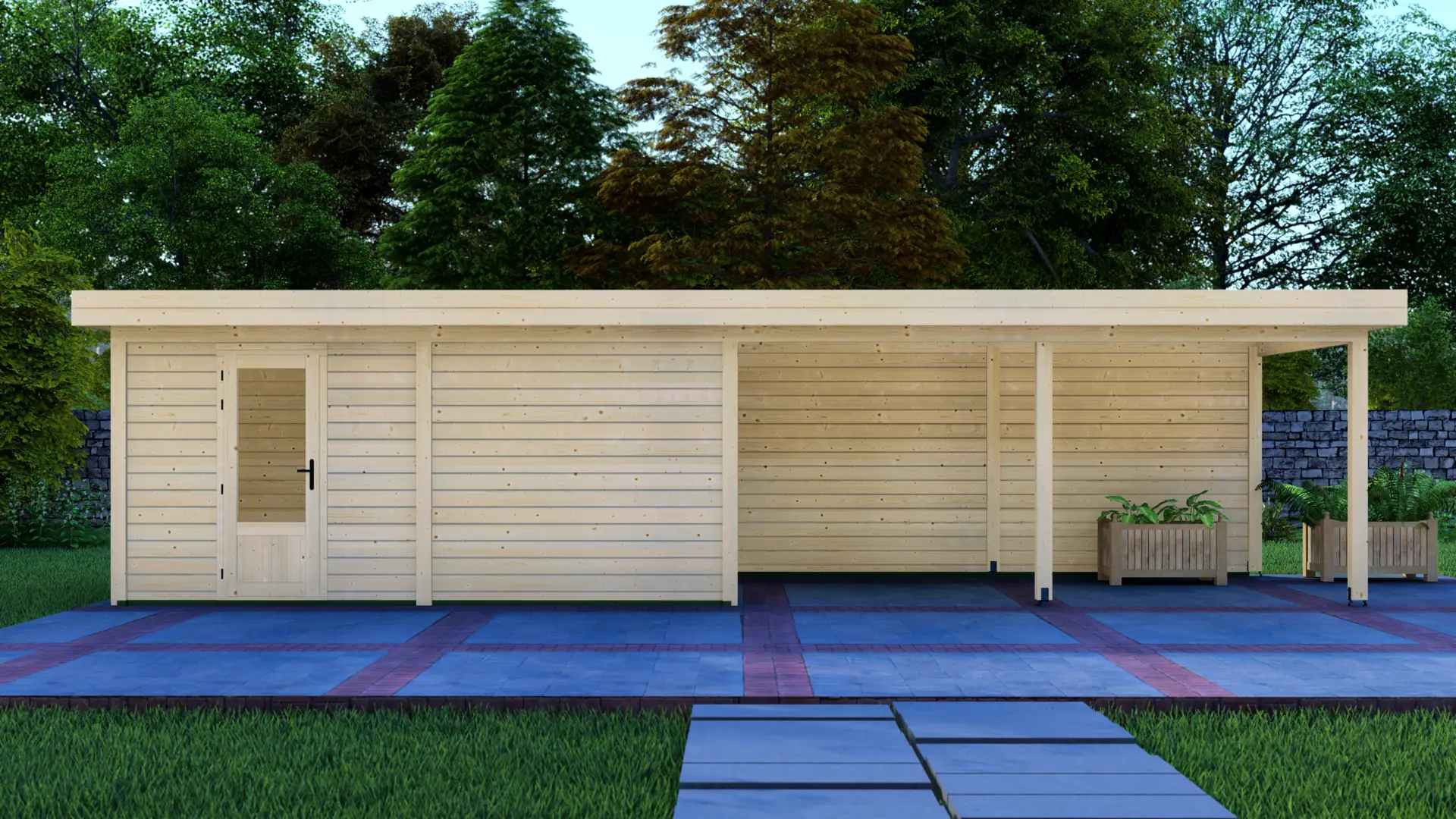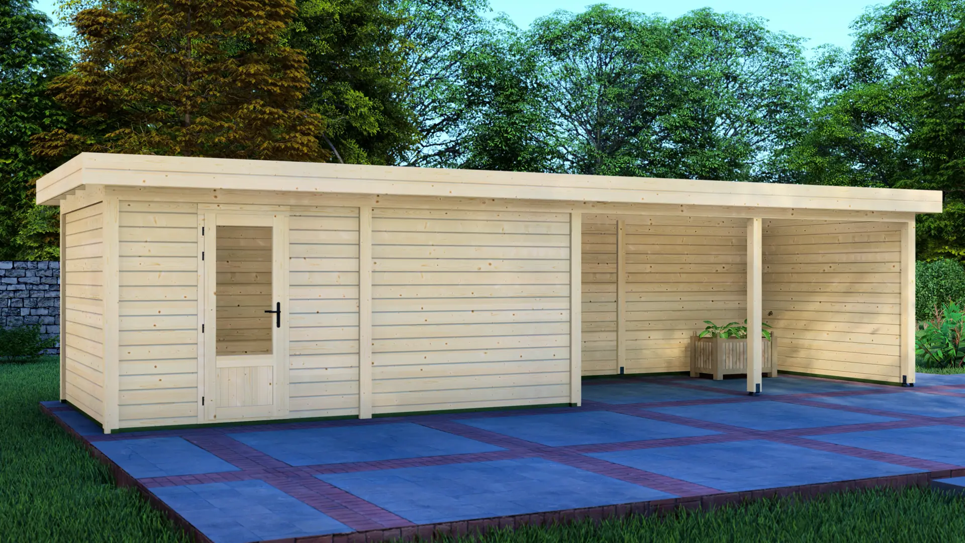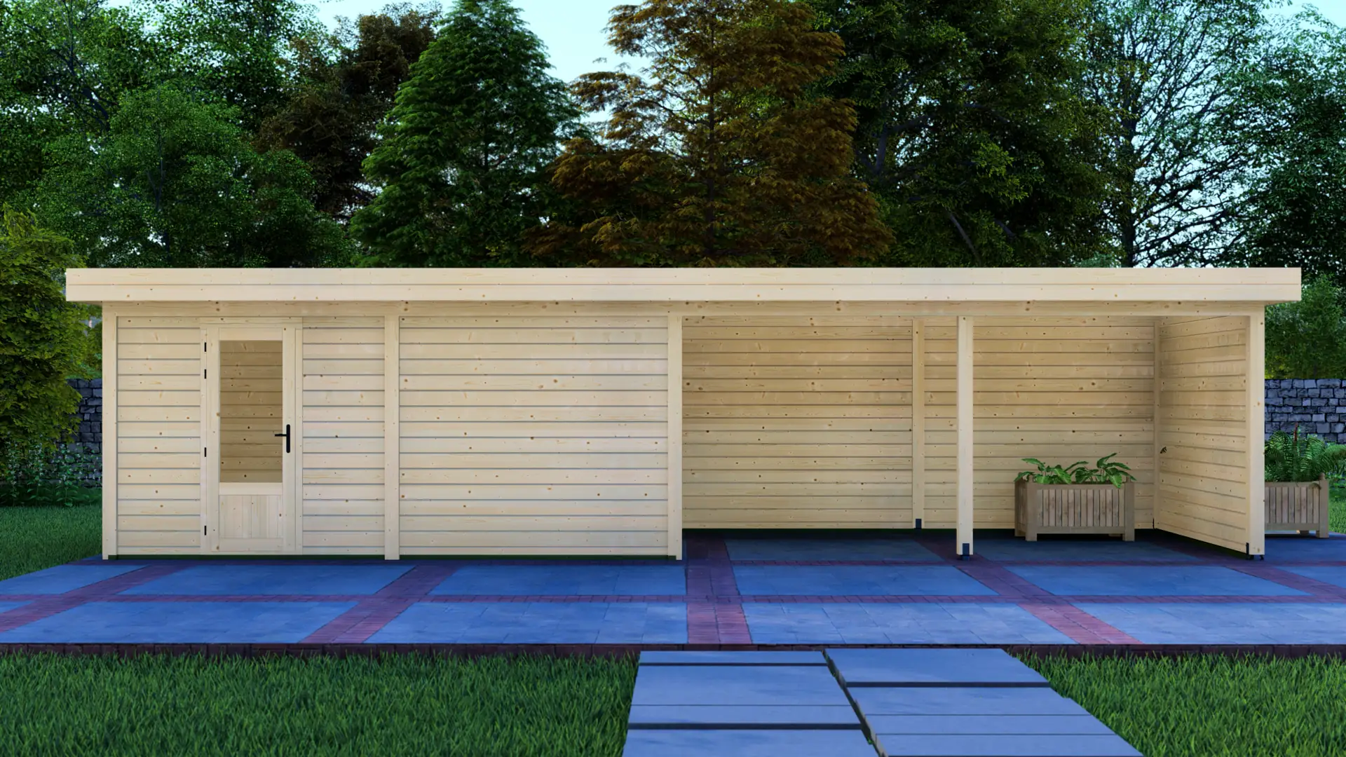 The Cabin 5x3m with Canopy 5x3m is a highly versatile outdoor structure engineered using our contemporary Post System. Combining a secure 15m² enclosed cabin with an adjacent 15m² open canopy, this structure delivers a perfect hybrid space for relaxation, storage, or outdoor entertainment.