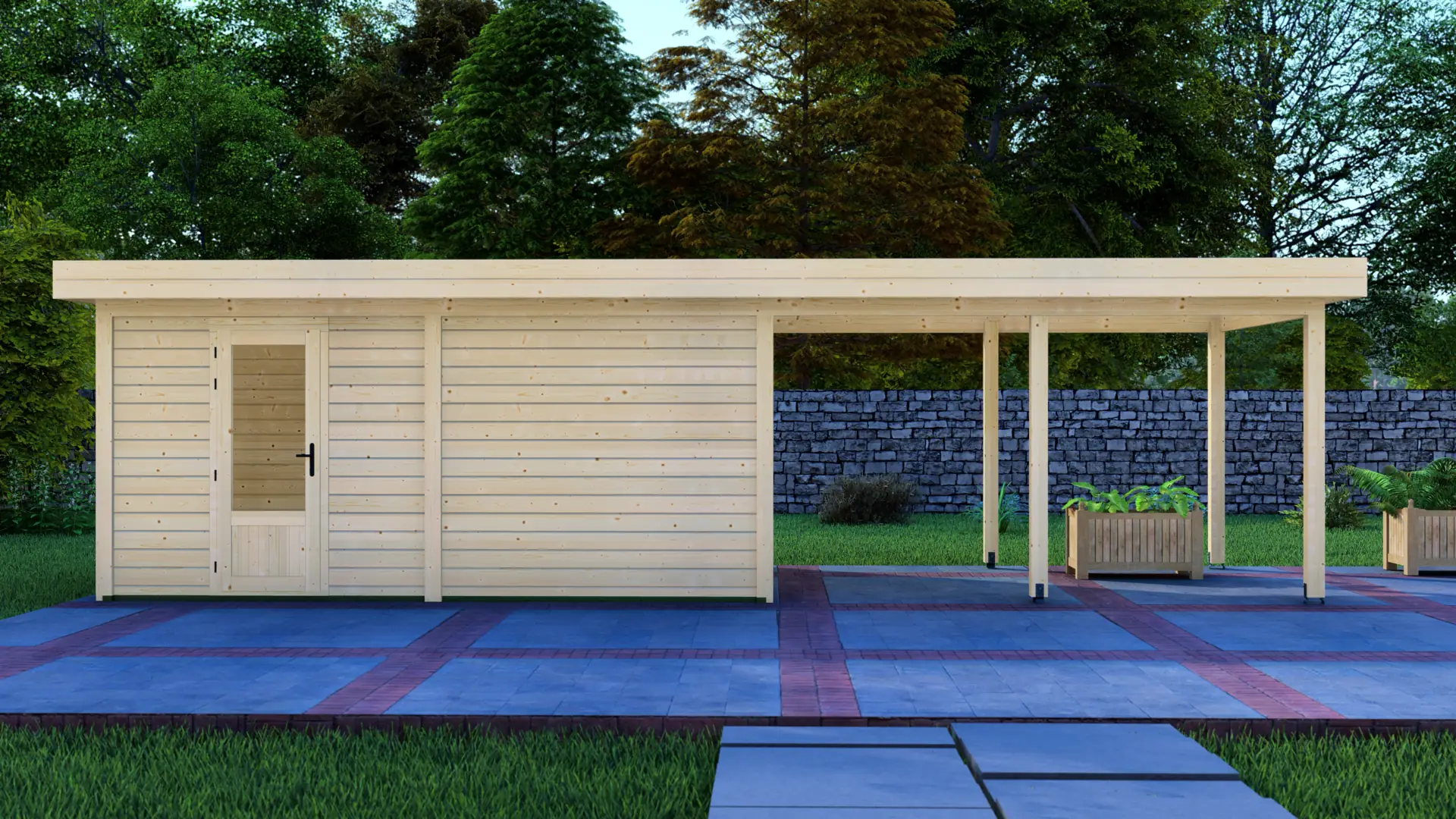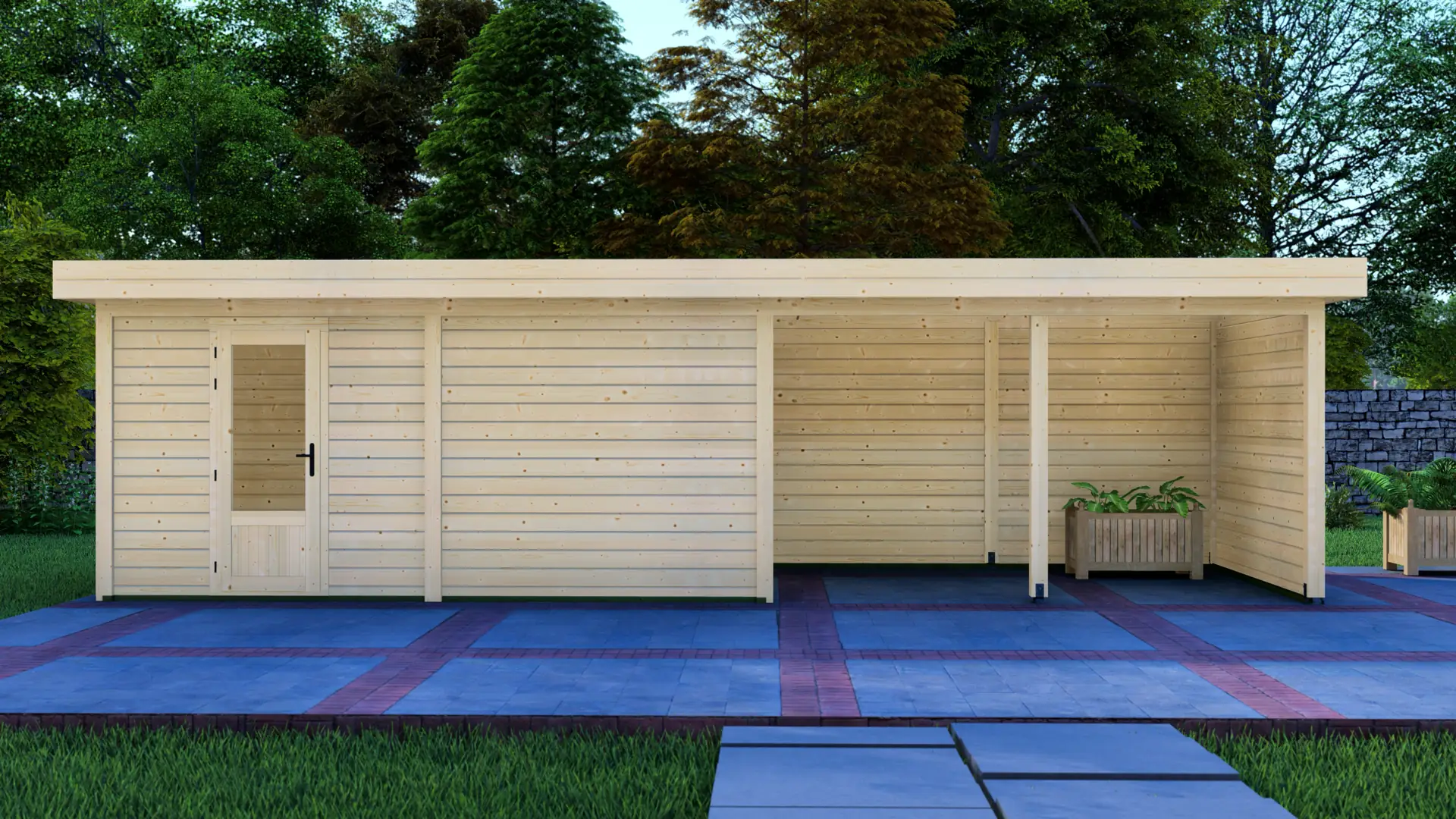 The Cabin 5x3m with Canopy 4x3m is a highly versatile outdoor structure engineered using our contemporary Post System. Combining a secure 15m² enclosed cabin with an adjacent 12m² open canopy, this structure delivers a perfect hybrid space for relaxation, storage, or outdoor entertainment.