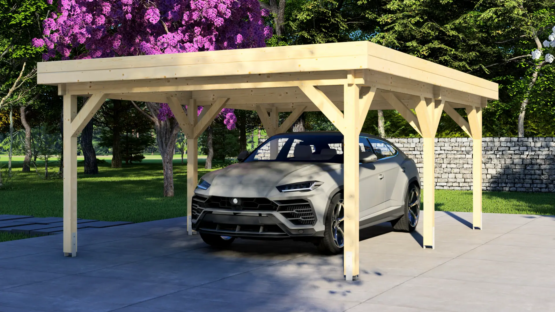 The Carport Classic 7×4 Flat offers substantial shelter for vehicles, equipment, and outdoor spaces. Constructed from premium Nordic spruce, it provides natural weather resistance and durability. This flexible structure serves as vehicle protection, covered workspace, outdoor seating area, storage solution, or entertainment space.
