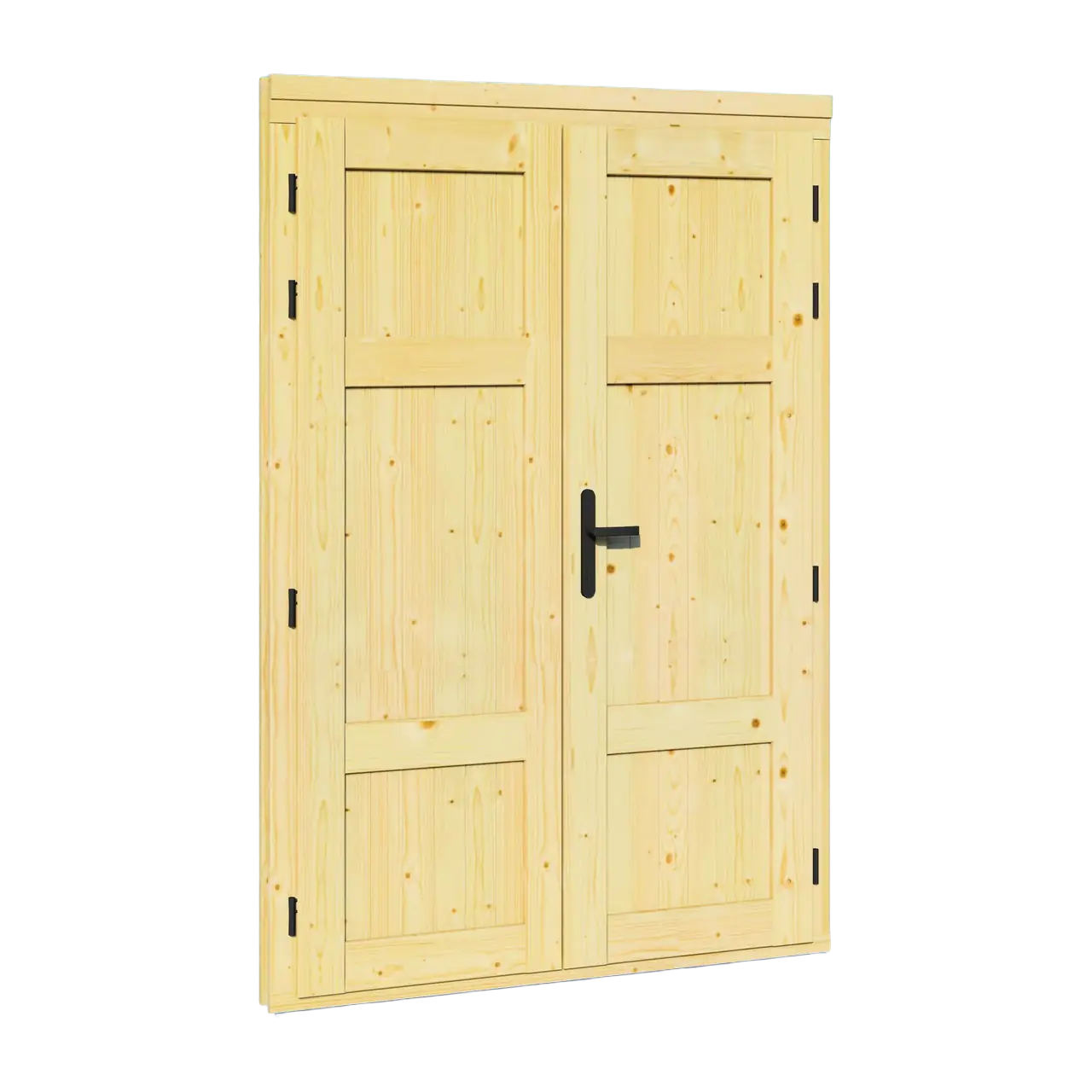 The SDD-4 is a heavy-duty outward-opening timber double door for log cabins and garden buildings. Built from a 45mm spruce profile, it delivers a traditional look with reliable weather protection.