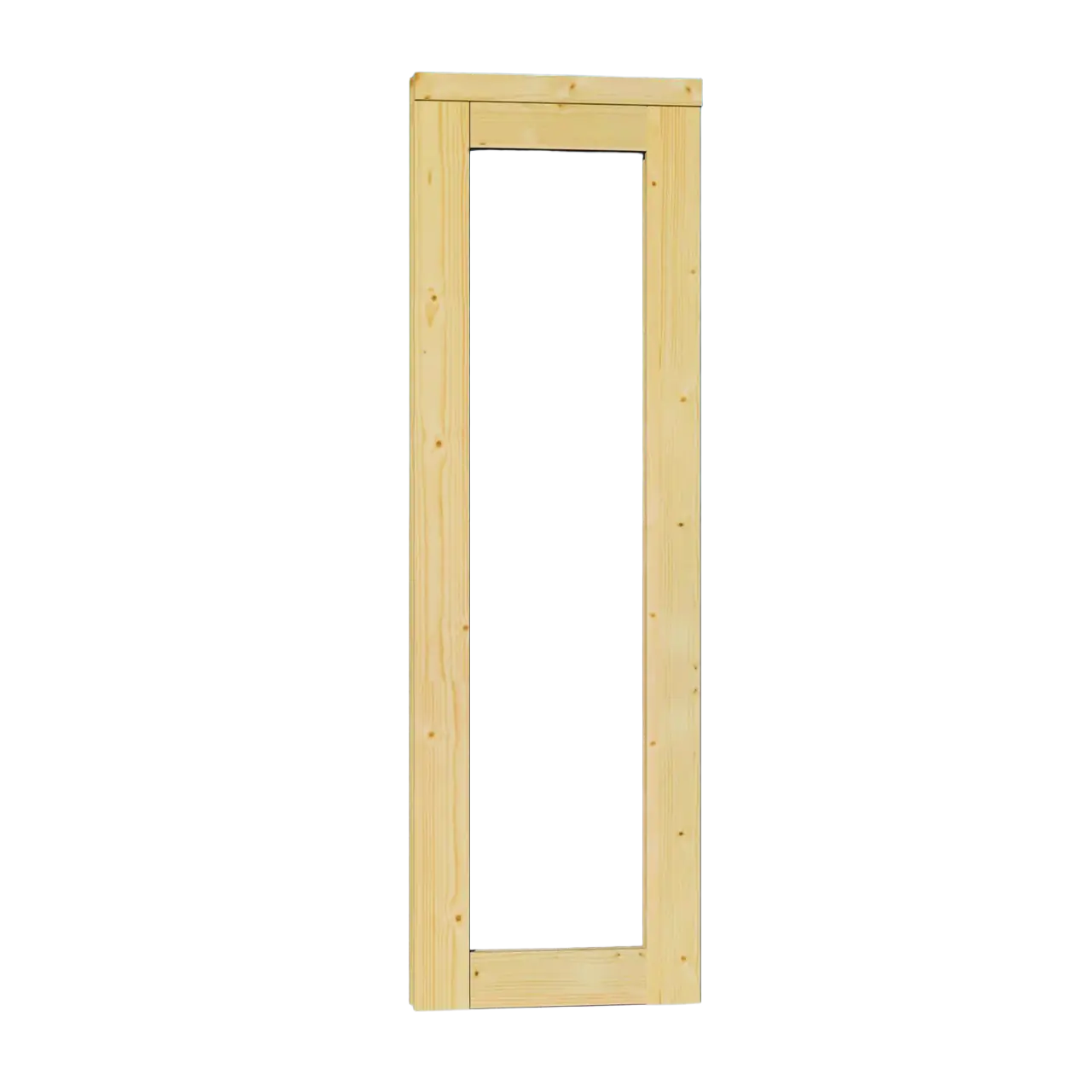 Slim-profile fixed window in solid spruce with double glazing. 571 x 1821mm, rubber-sealed casing, warp-resistant laminated frame. Ideal for timber garden buildings.