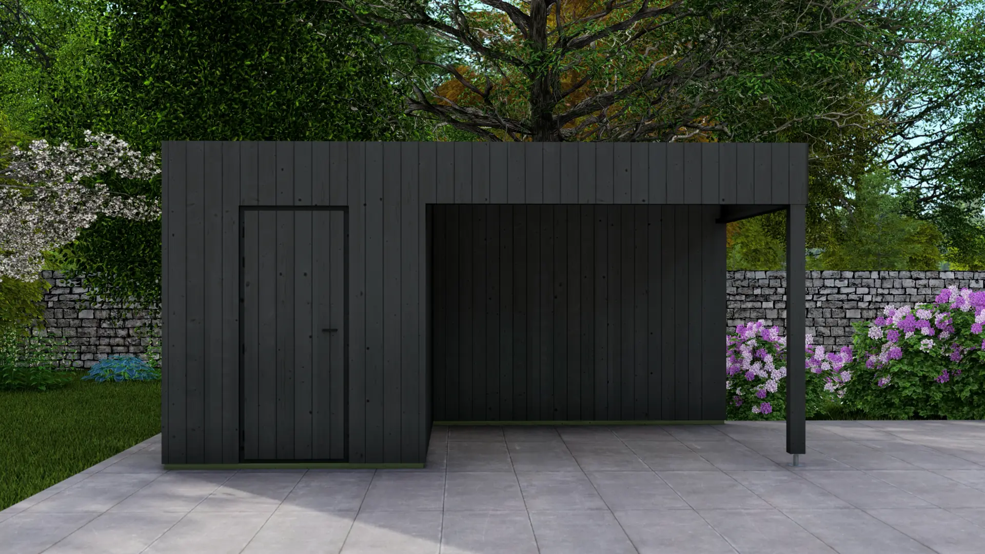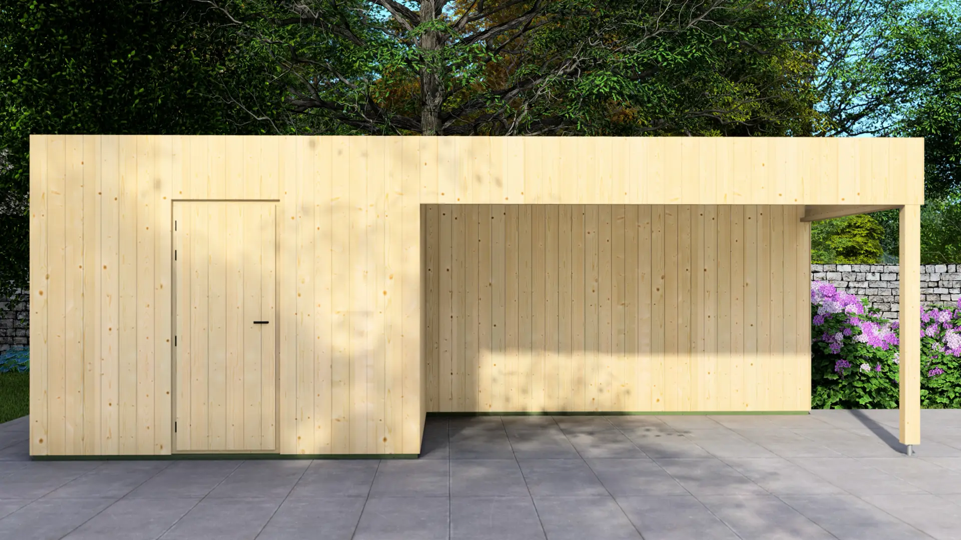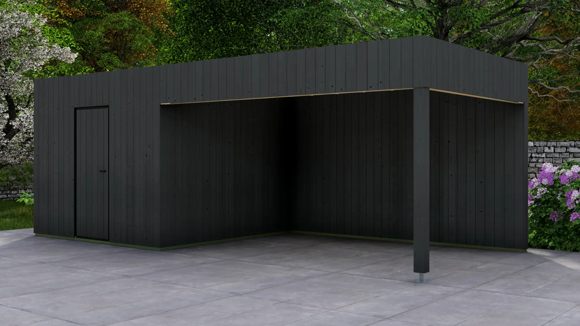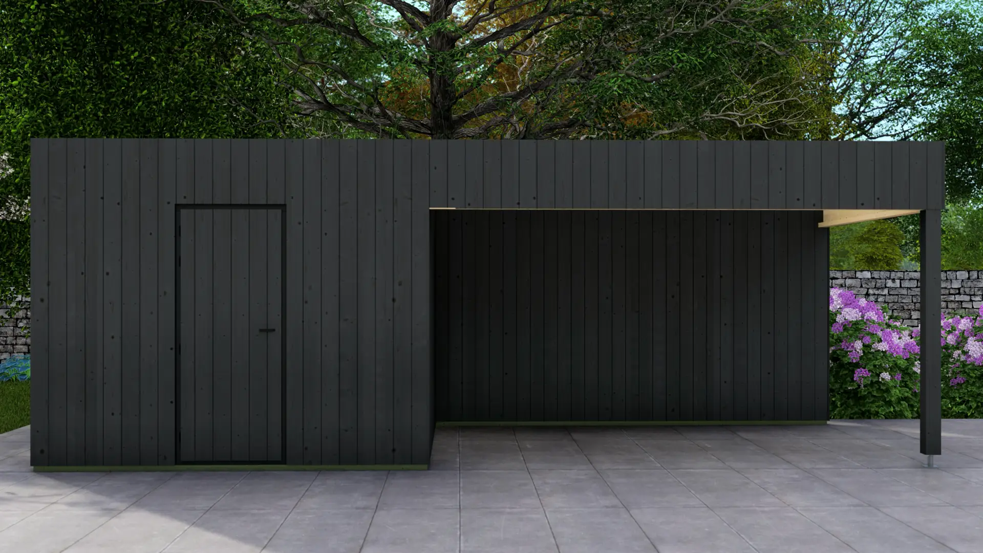 The Frame Cabin is appreciated by clients who value clean architectural lines and functional versatility. This structure combines a secure 304x304cm enclosed cabin with a spacious 400cm open canopy, creating a seamless flow between indoor protection and outdoor living.