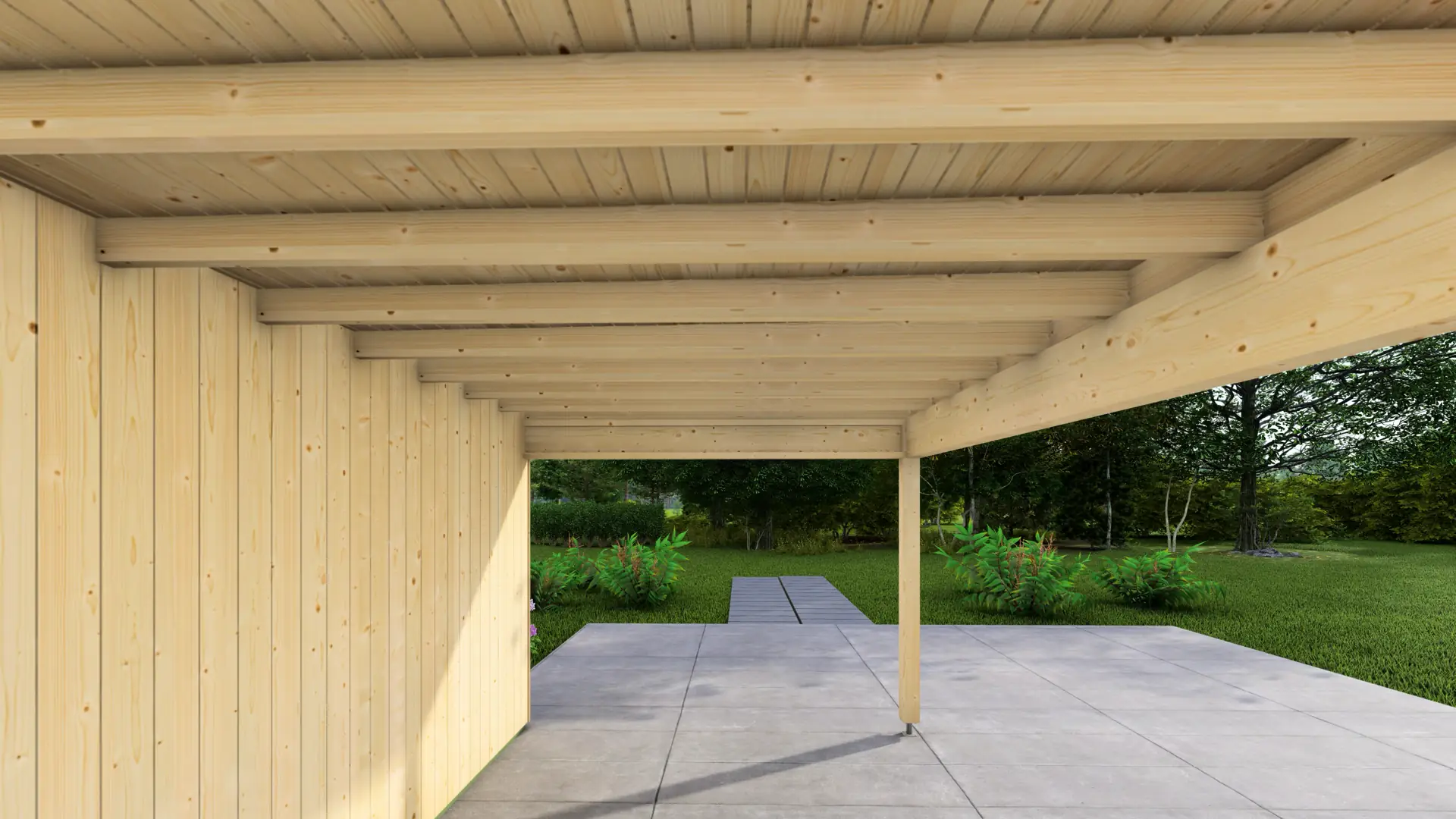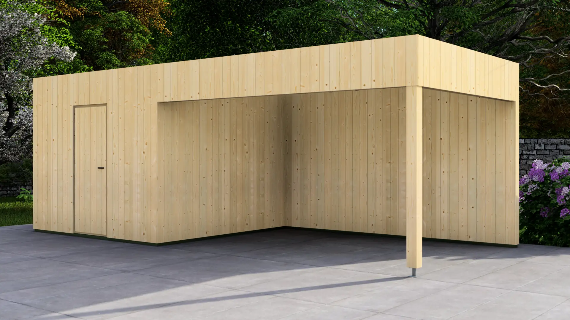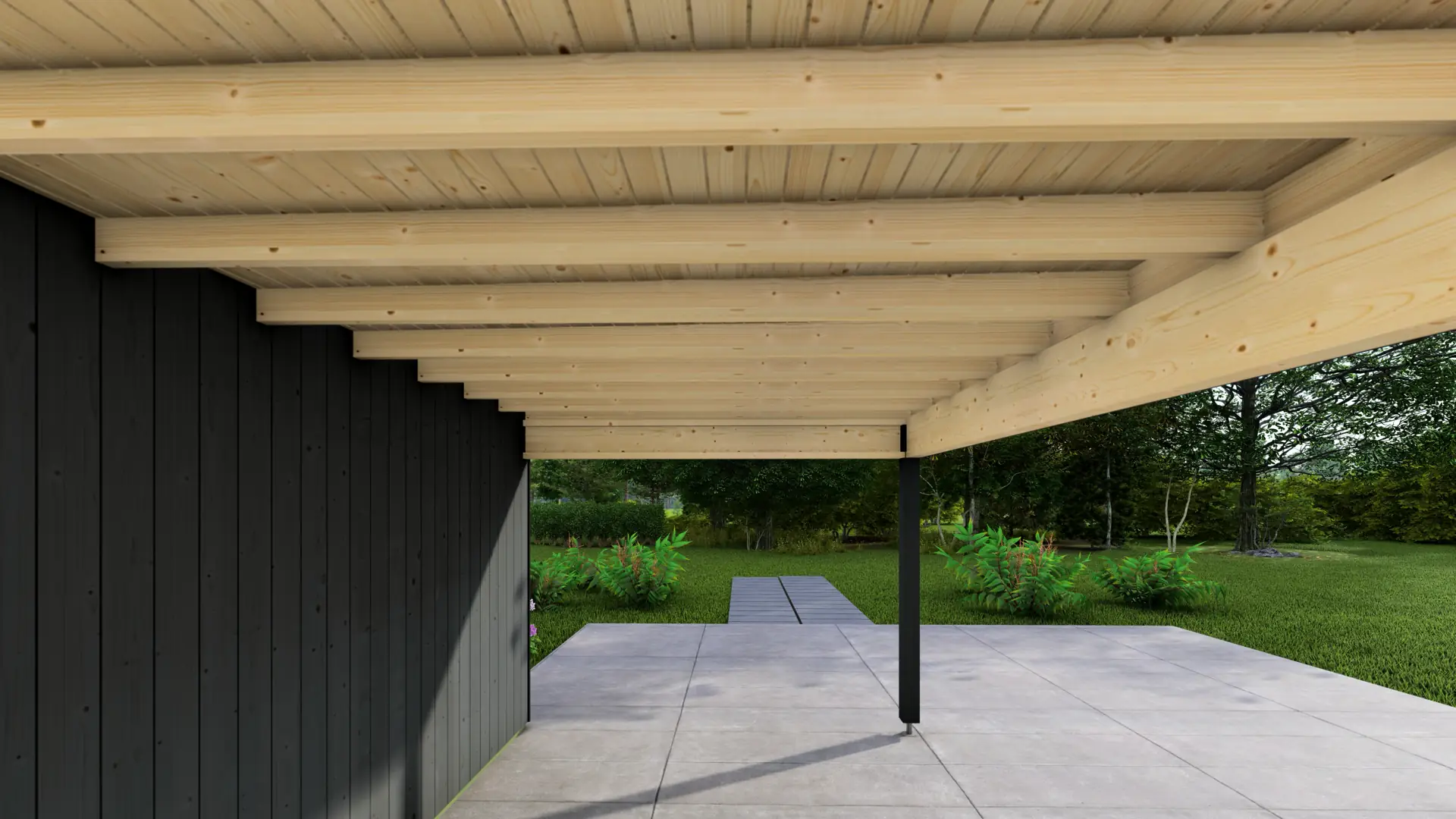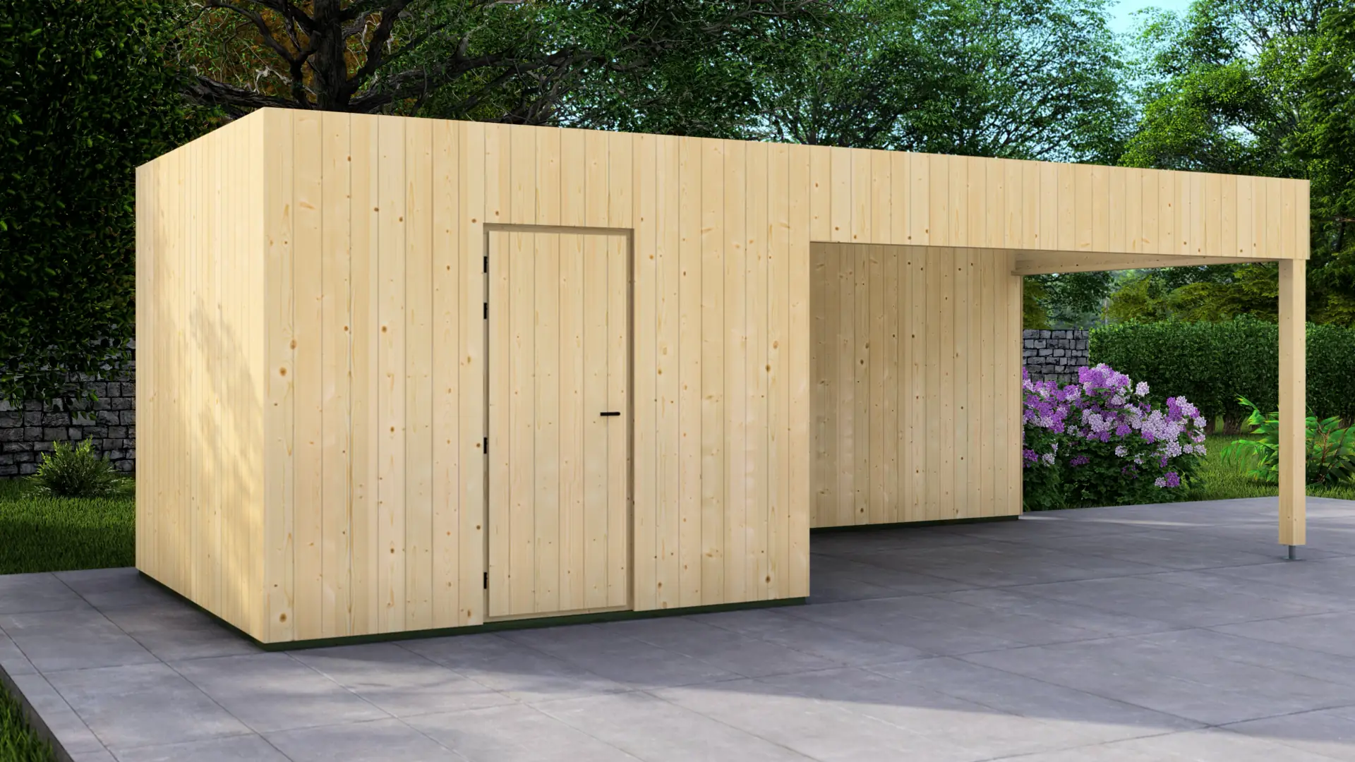 The Frame Cabin is appreciated by clients who value clean architectural lines and functional versatility. This structure combines a secure 304x304cm enclosed cabin with a spacious 400cm open canopy, creating a seamless flow between indoor protection and outdoor living.