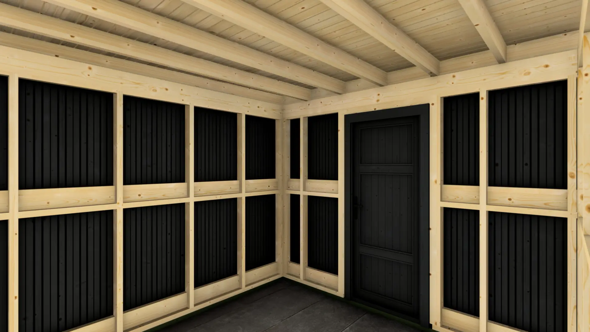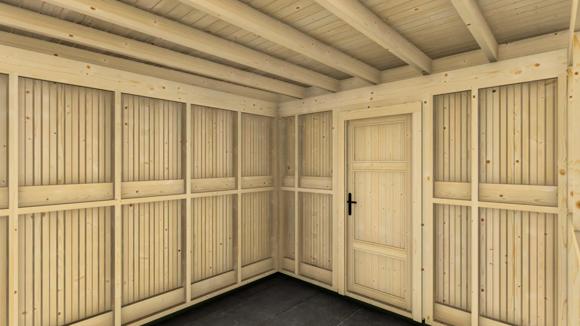 Engineered with a robust 95mm timber frame, this building distinguishes itself from traditional log cabins through its refined aesthetic. The exterior features 18mm vertical Nordic spruce cladding with tongue-and-groove joints, offering a contemporary visual finish that integrates naturally into modern garden landscapes. The flat roof design, with a subtle drainage slope, maintains a low profile that complies with many urban planning restrictions.