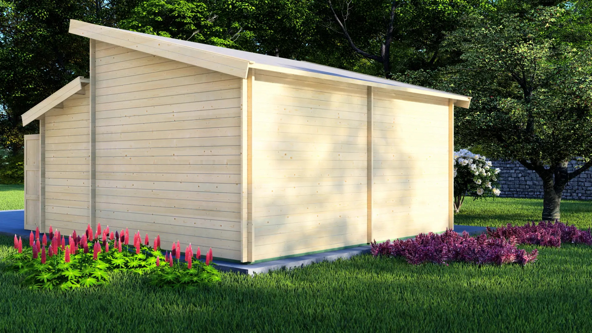 The structure is made from solid 44mm Nordic spruce, chosen for its strength and a tidy finish. The garage comes as a complete kit with pre-cut, labelled parts, which helps the build go together neatly and accurately.