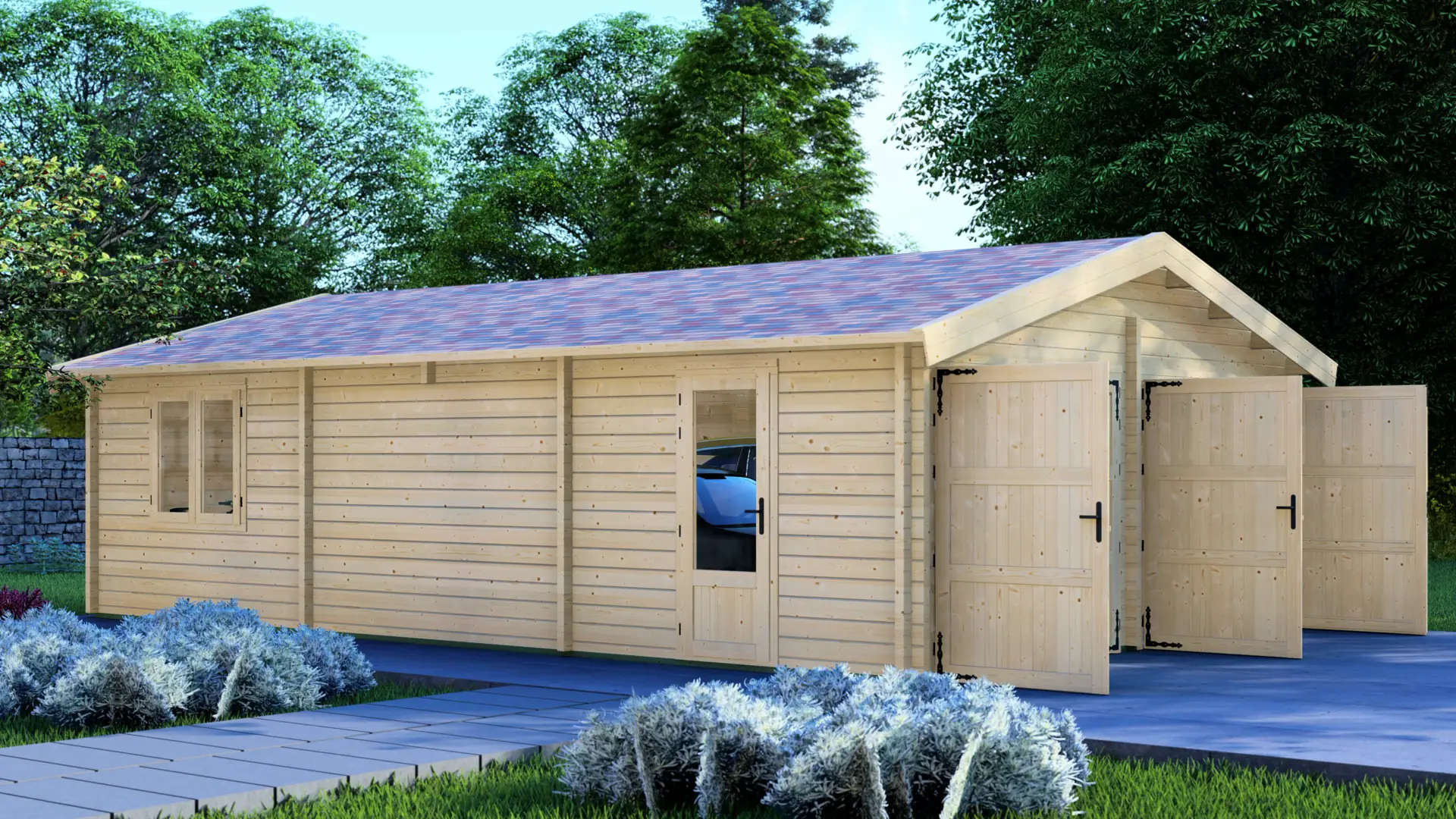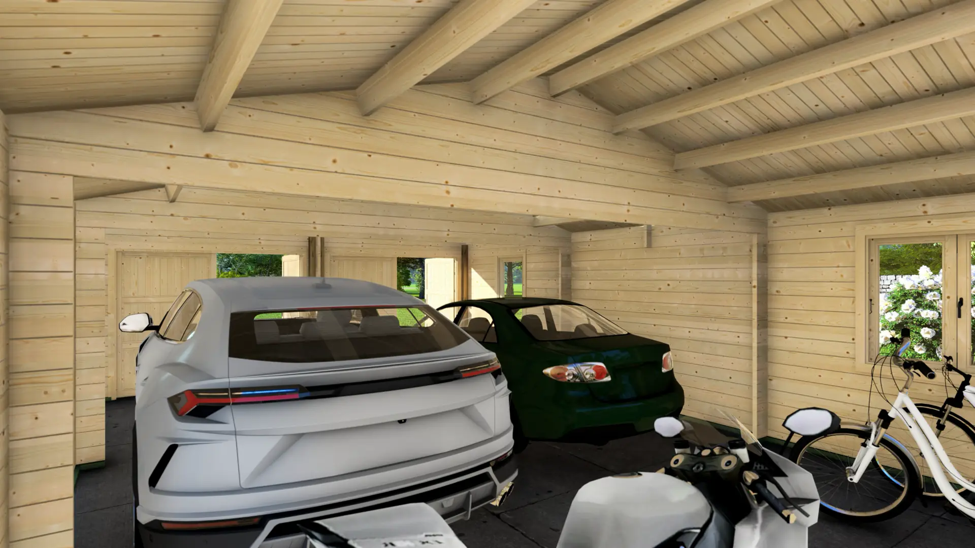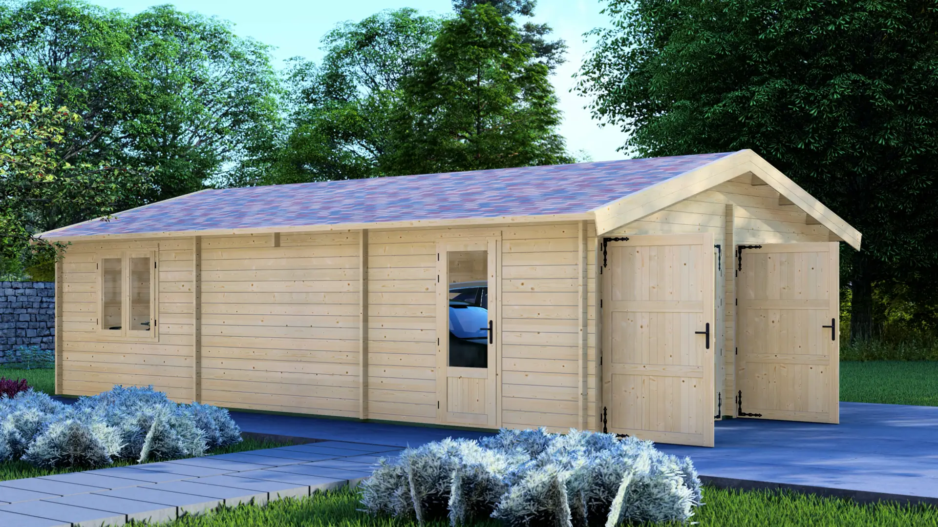 The Garage Capable is an expansive timber structure designed to provide secure, weather-protected storage for multiple vehicles or a large-scale home workshop. Constructed with 44mm solid wall logs from high-quality Nordic spruce, this building offers superior natural insulation and structural integrity compared to standard metal or plastic alternatives.
