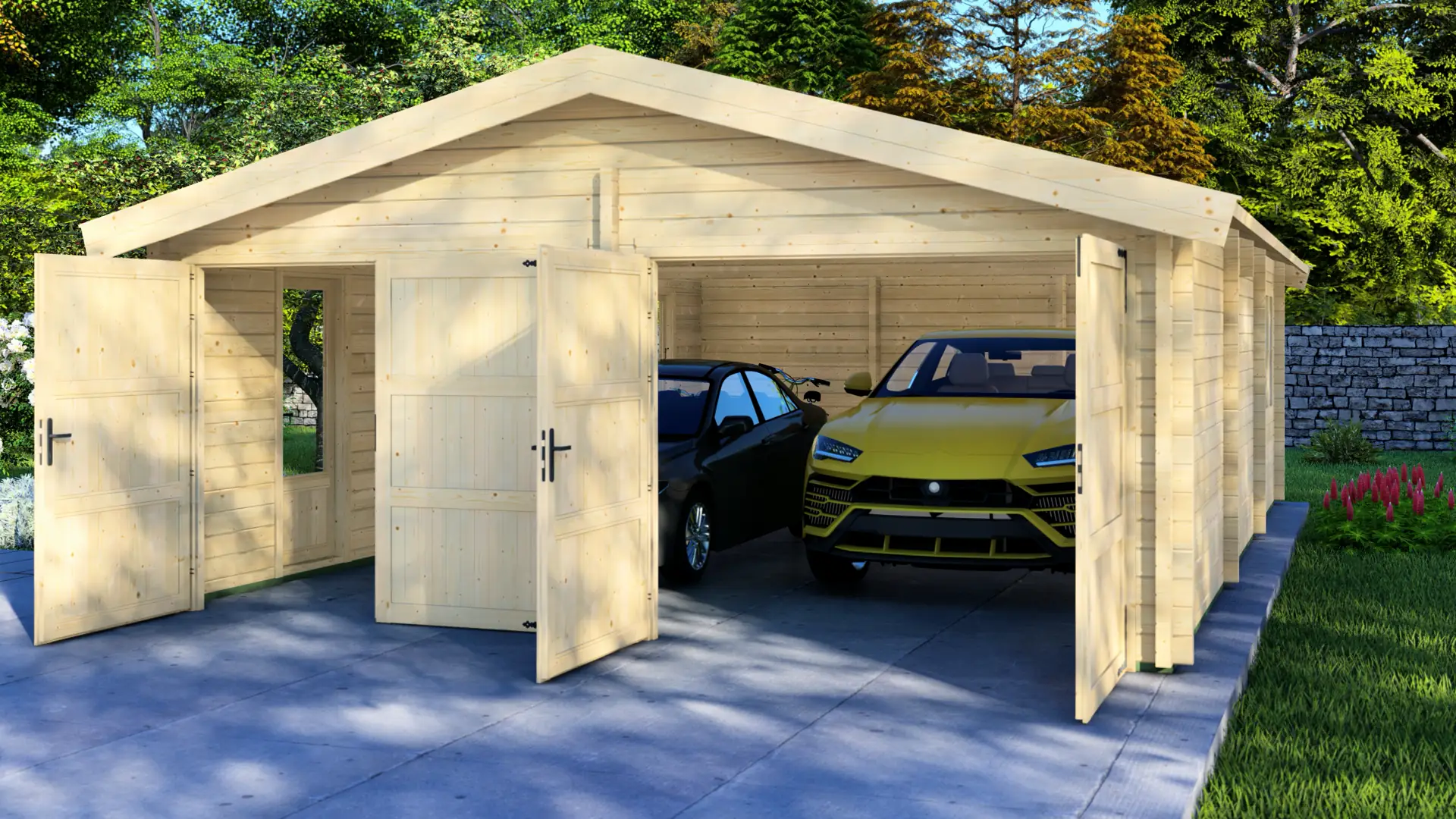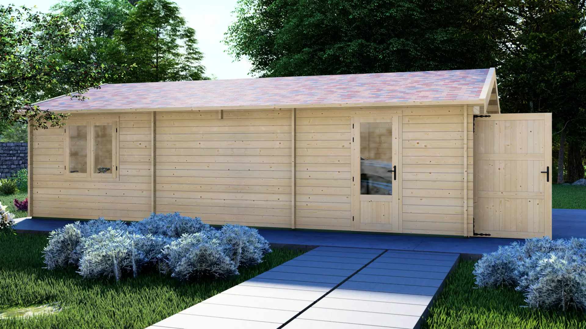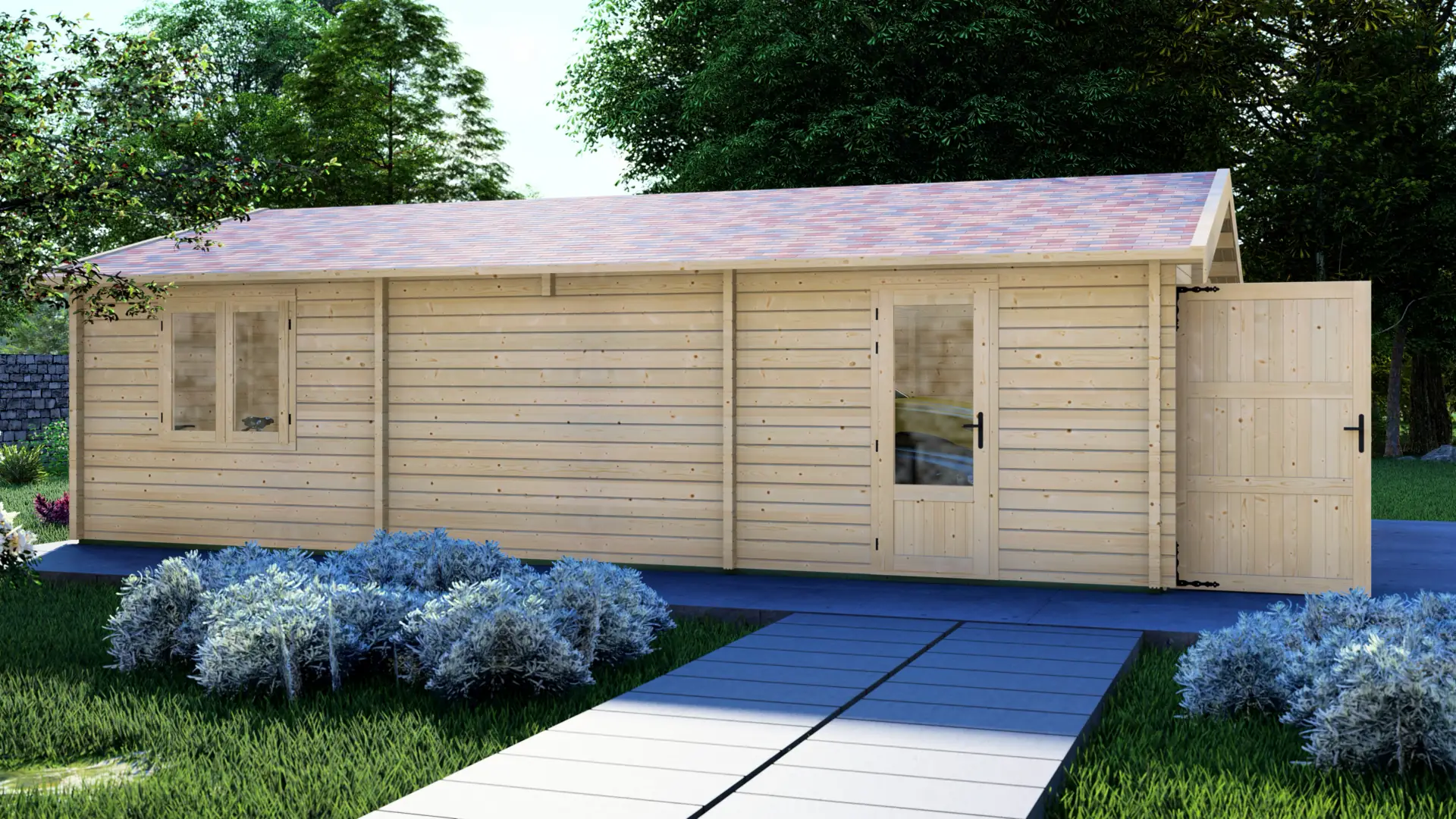 The Garage Capable is an expansive timber structure designed to provide secure, weather-protected storage for multiple vehicles or a large-scale home workshop. Constructed with 44mm solid wall logs from high-quality Nordic spruce, this building offers superior natural insulation and structural integrity compared to standard metal or plastic alternatives.
