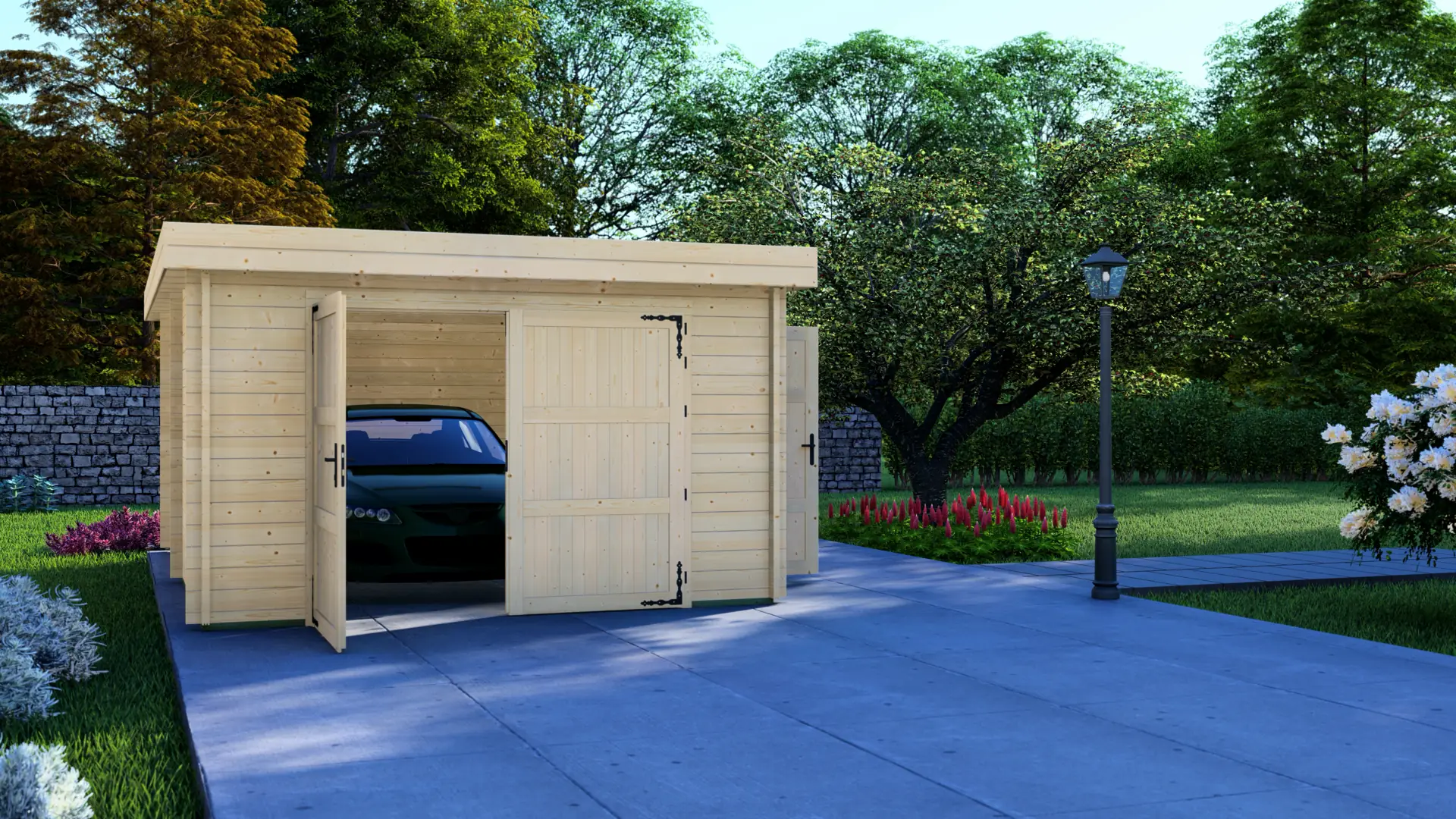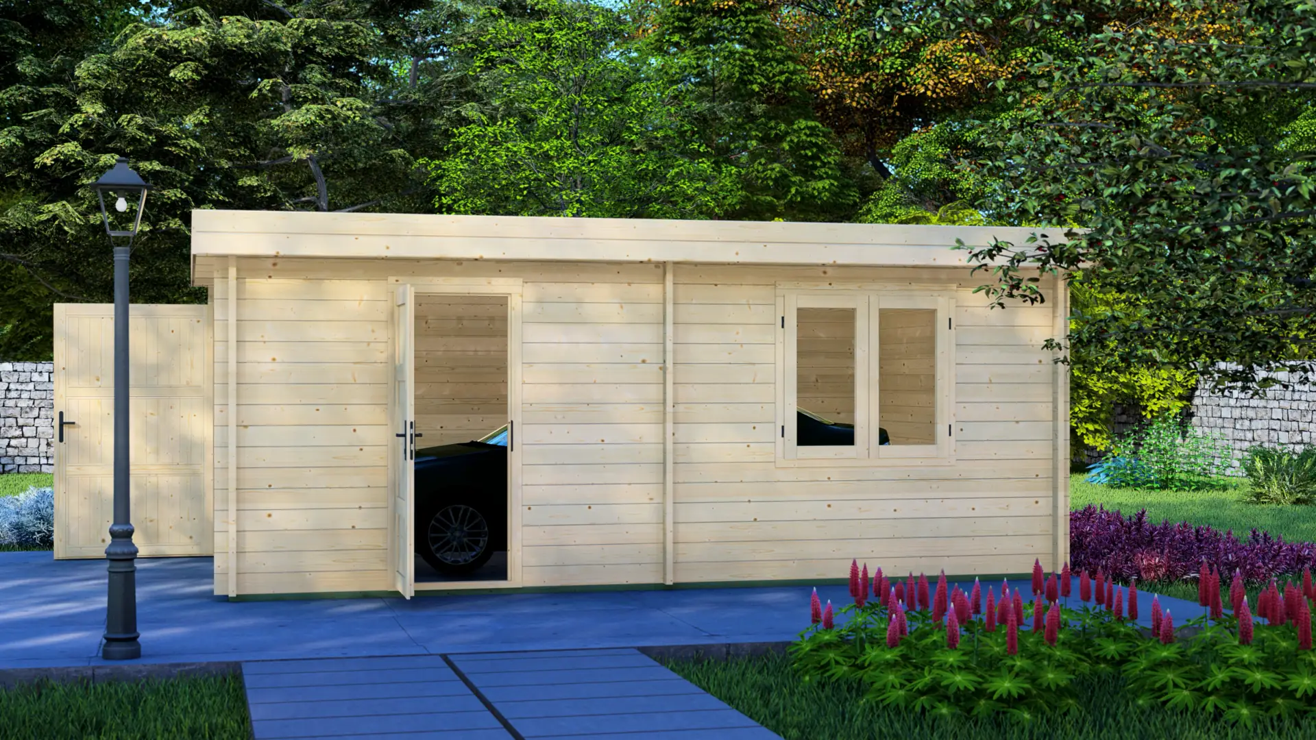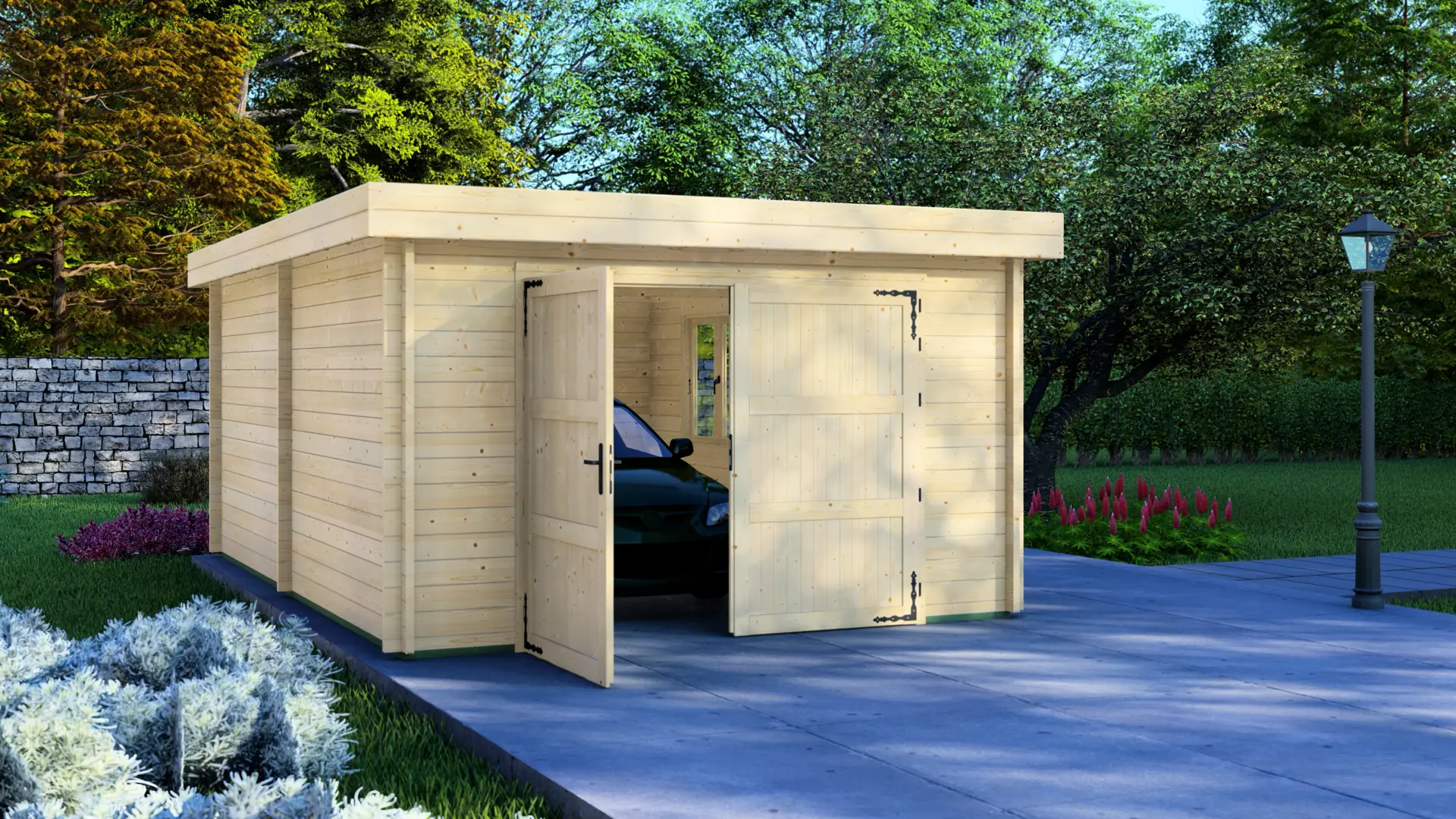 The Garage Stable 6×4 Flat is a high-quality timber building designed to provide secure vehicle storage while offering the aesthetic appeal of a modern flat-roof structure. Engineered from 44mm solid Nordic spruce, this garage is built to withstand European weather conditions while providing a stable, long-lasting environment for vehicles, equipment, or workshop use.