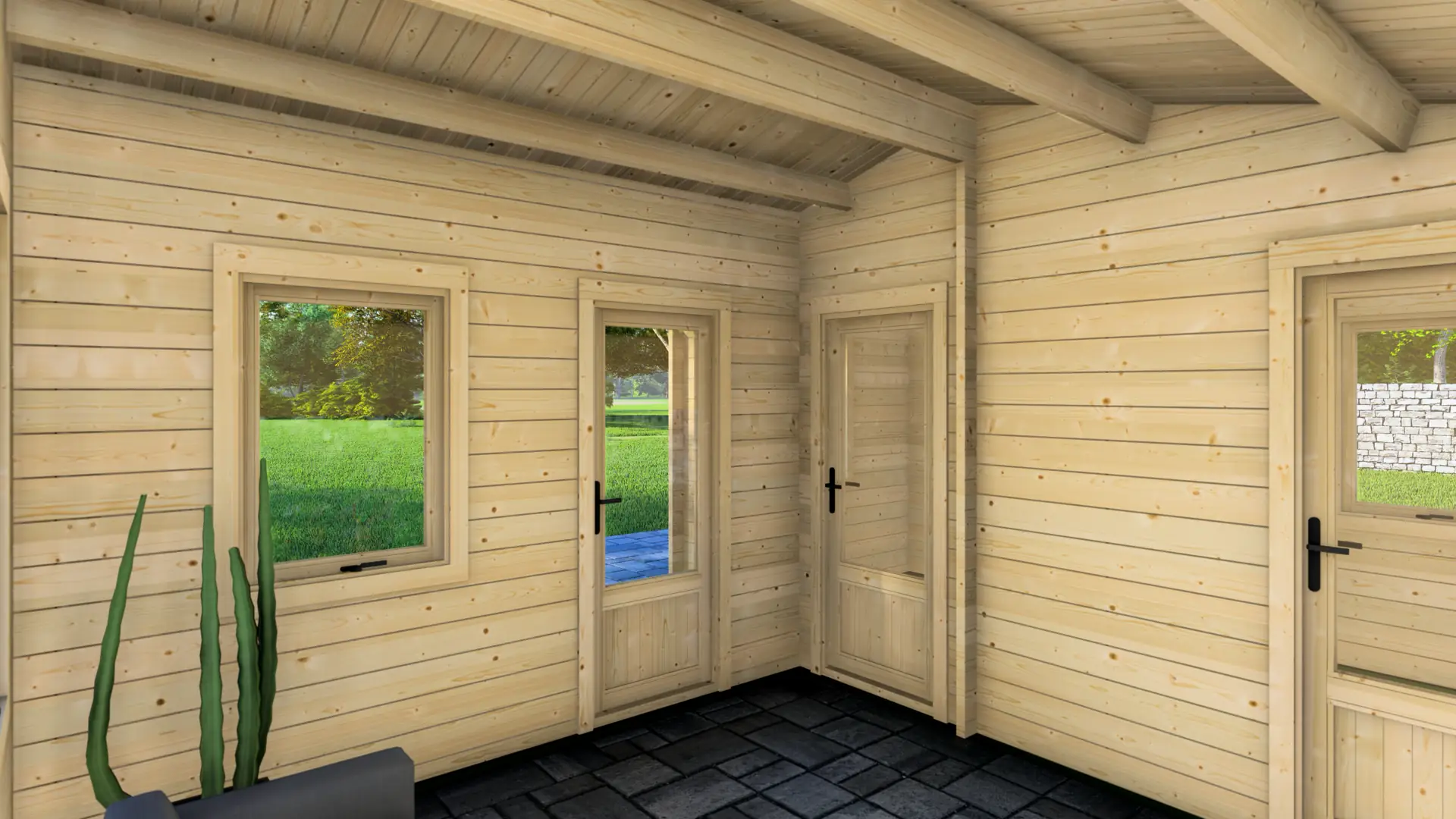 At 595×470cm, this cabin works on plots where space is limited or planning is tight. You still get three proper rooms, but in a package that’s easier to approve, faster to build, and more affordable to buy. Perfect for buyers who need real functionality without oversized footprints or budgets.