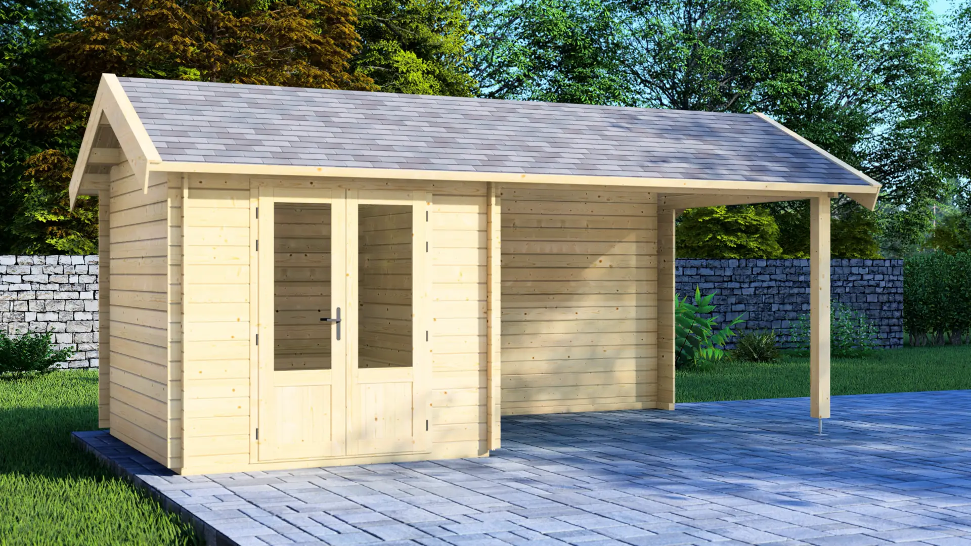 Manufactured from high-quality Nordic spruce, the Serene utilizes a classic log construction method with wind-tight corner connections. The structure is supported by a 44x70mm base beam foundation, protecting the timber from direct ground contact. Whether used as a hobby room, garden retreat, or sheltered entertainment space, the Serene offers flexibility for various outdoor lifestyles.