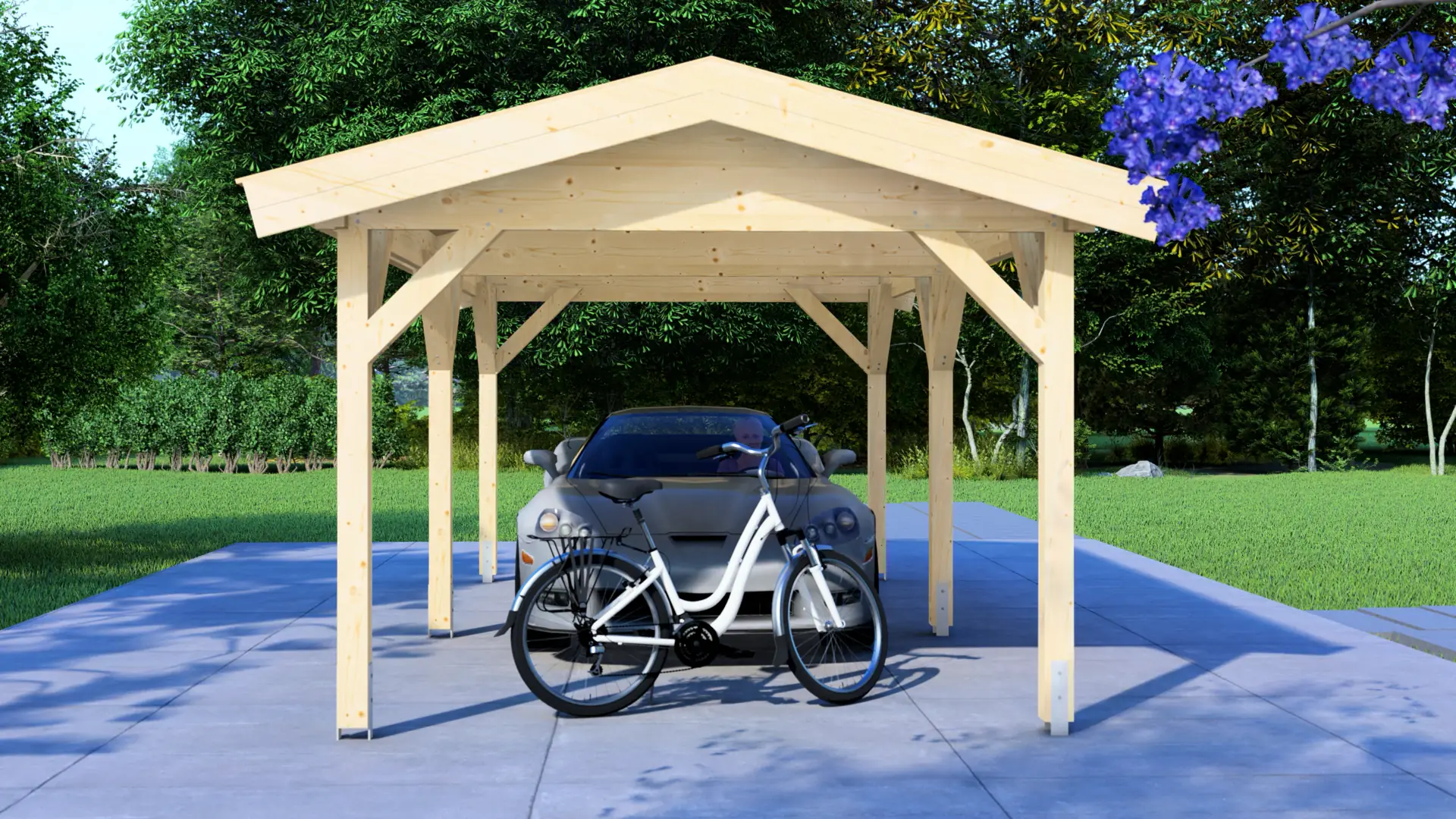 The Carport Classic 7×4 Apex delivers substantial shelter for vehicles, equipment, and outdoor spaces. Crafted from premium Nordic spruce with a classic pitched roof, it combines natural durability with timeless design. Use it for vehicle protection, covered work areas, outdoor entertaining, or garden storage.