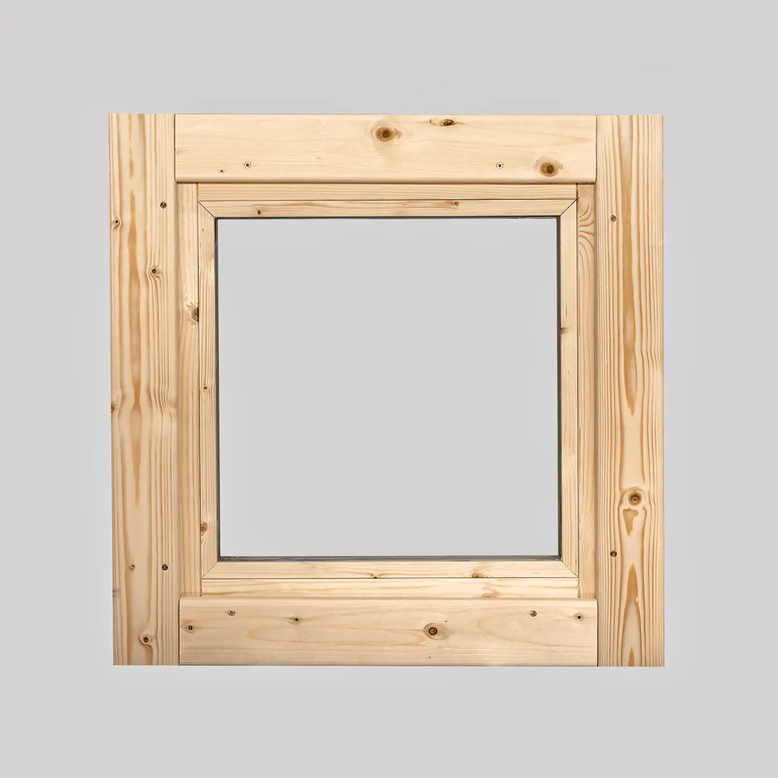 Fixed square timber window (571 x 606 mm) with double glazing. Manufactured from Nordic spruce for 44mm log structures.