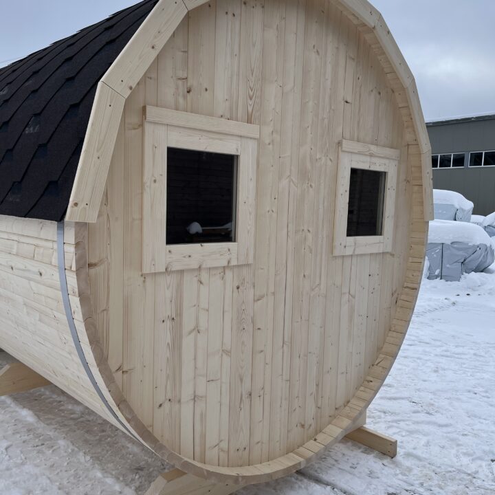 Piedāvājam augstākās kvalitātes egļu mucu pirtis. Pirts diametrs ir 235 cm, un to garumi ir 280, 310, 350 un 400 cm. Ja jūs interesē, sazinaties ar mums.